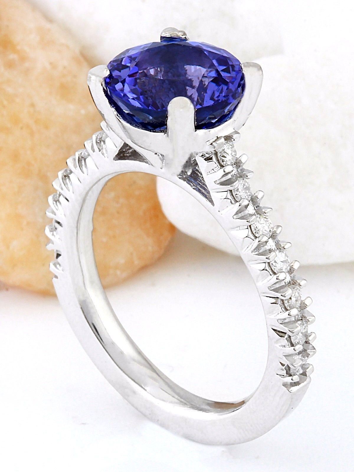 3.81 Carat Natural Tanzanite 14K Solid White Gold Diamond Ring