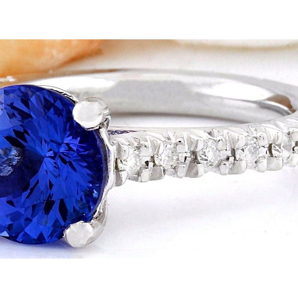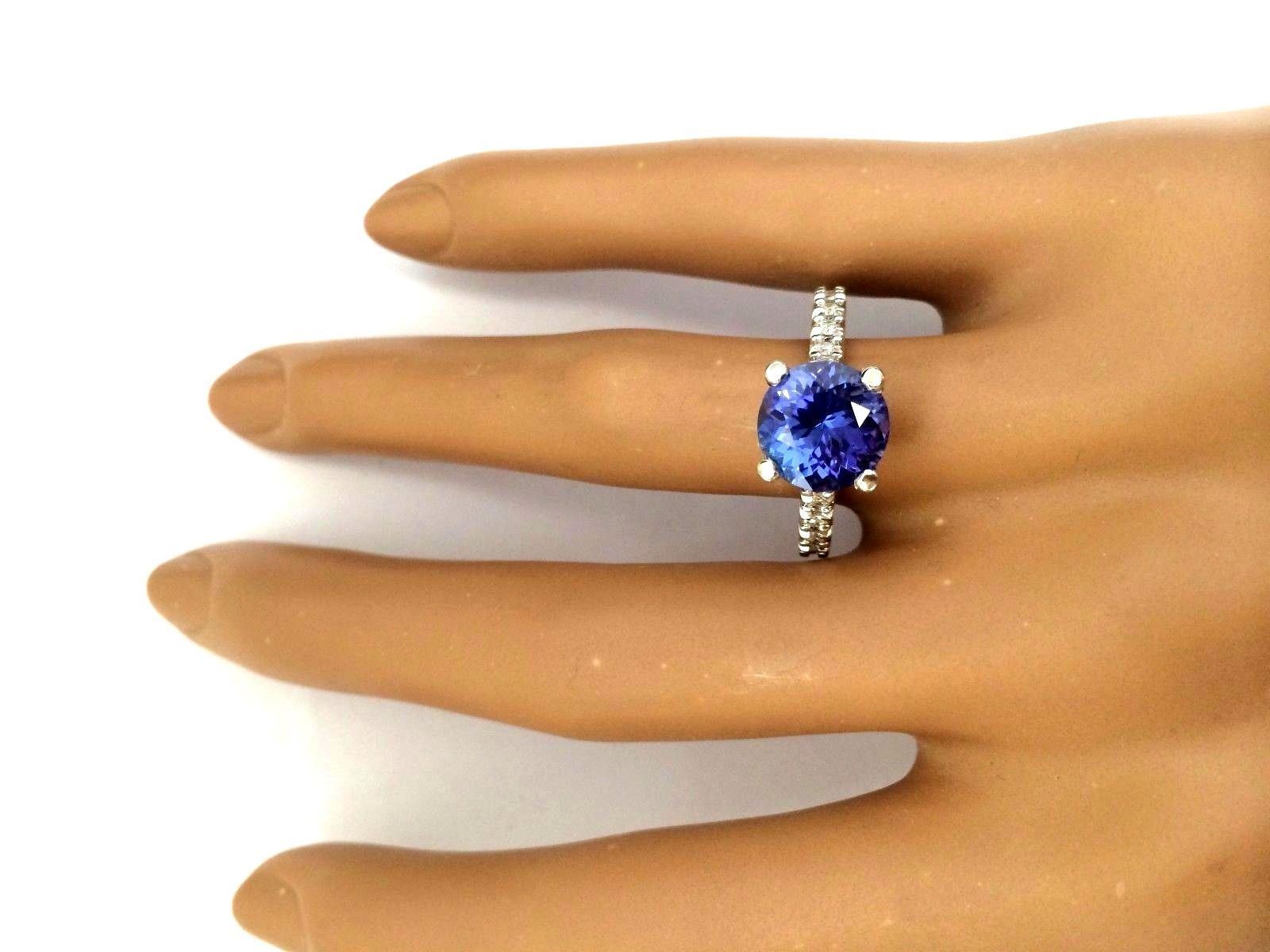 3.81 Carat Natural Tanzanite 18K Solid White Gold Diamond Ring