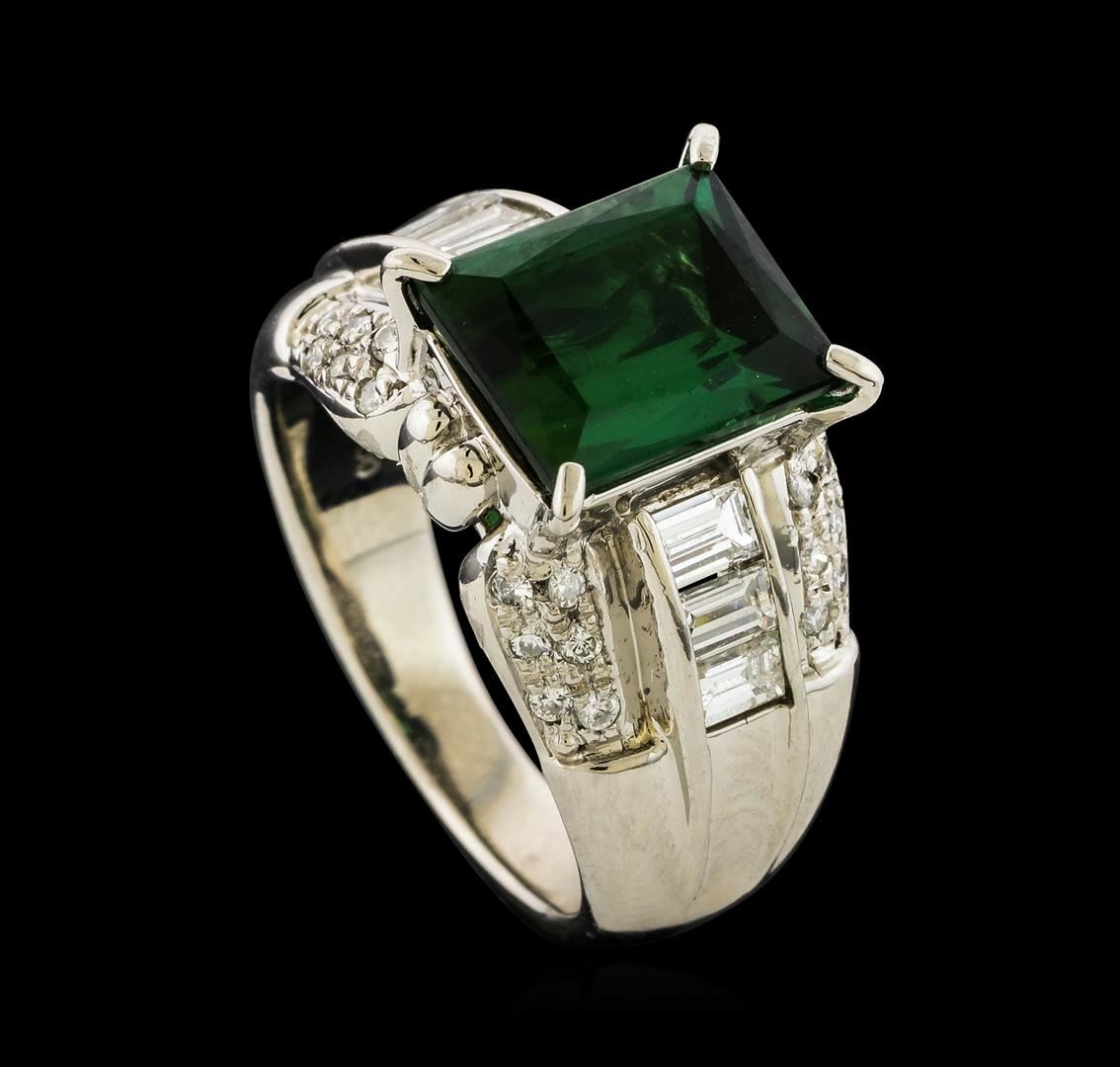 One ring featuring: Platinum containing Tourmaline with a total weight of 3.81ct and Diamonds with a total weight of 0.91ct. Total Weight of Ring: 12.5 grams.