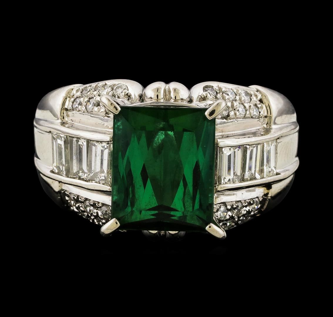 One ring featuring: Platinum containing Tourmaline with a total weight of 3.81ct and Diamonds with a total weight of 0.91ct. Total Weight of Ring: 12.5 grams.