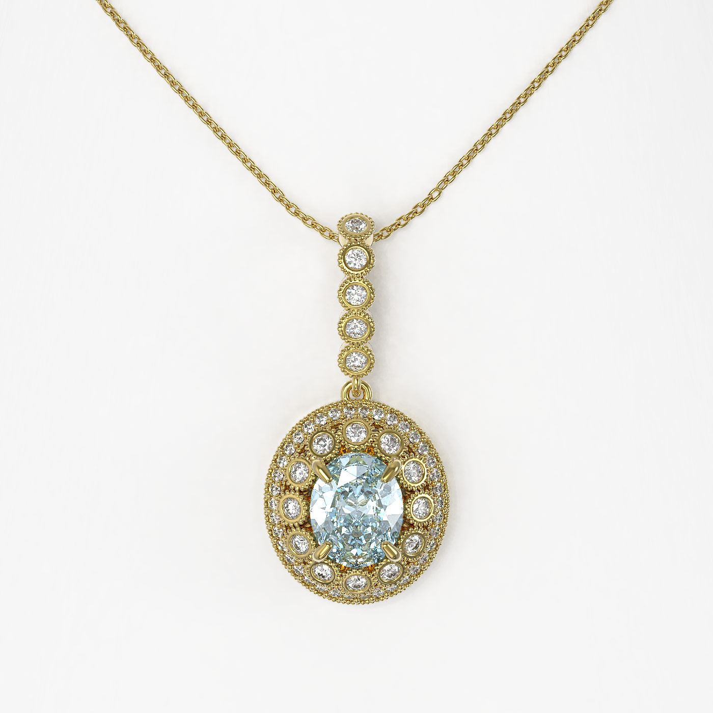 REF-136A8N - SKU: 43669 ---- 3.82 ctw Aquamarine & Diamond Victorian Necklace 14K Yellow Gold