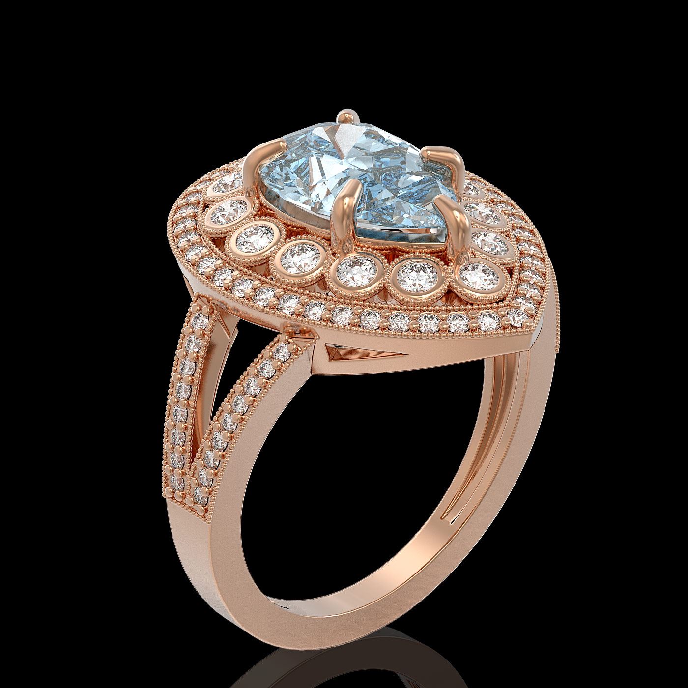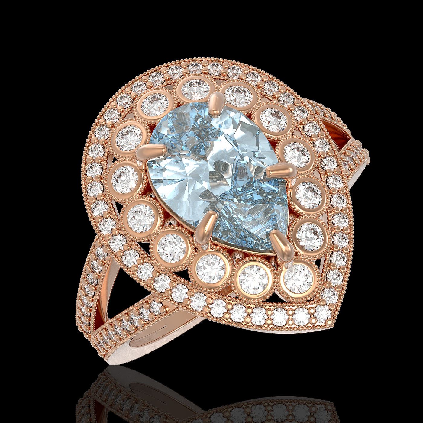 REF-168X8A - SKU: 43131 ---- 3.82 ctw Certified Aquamarine & Diamond Victorian Ring 14K Rose Gold