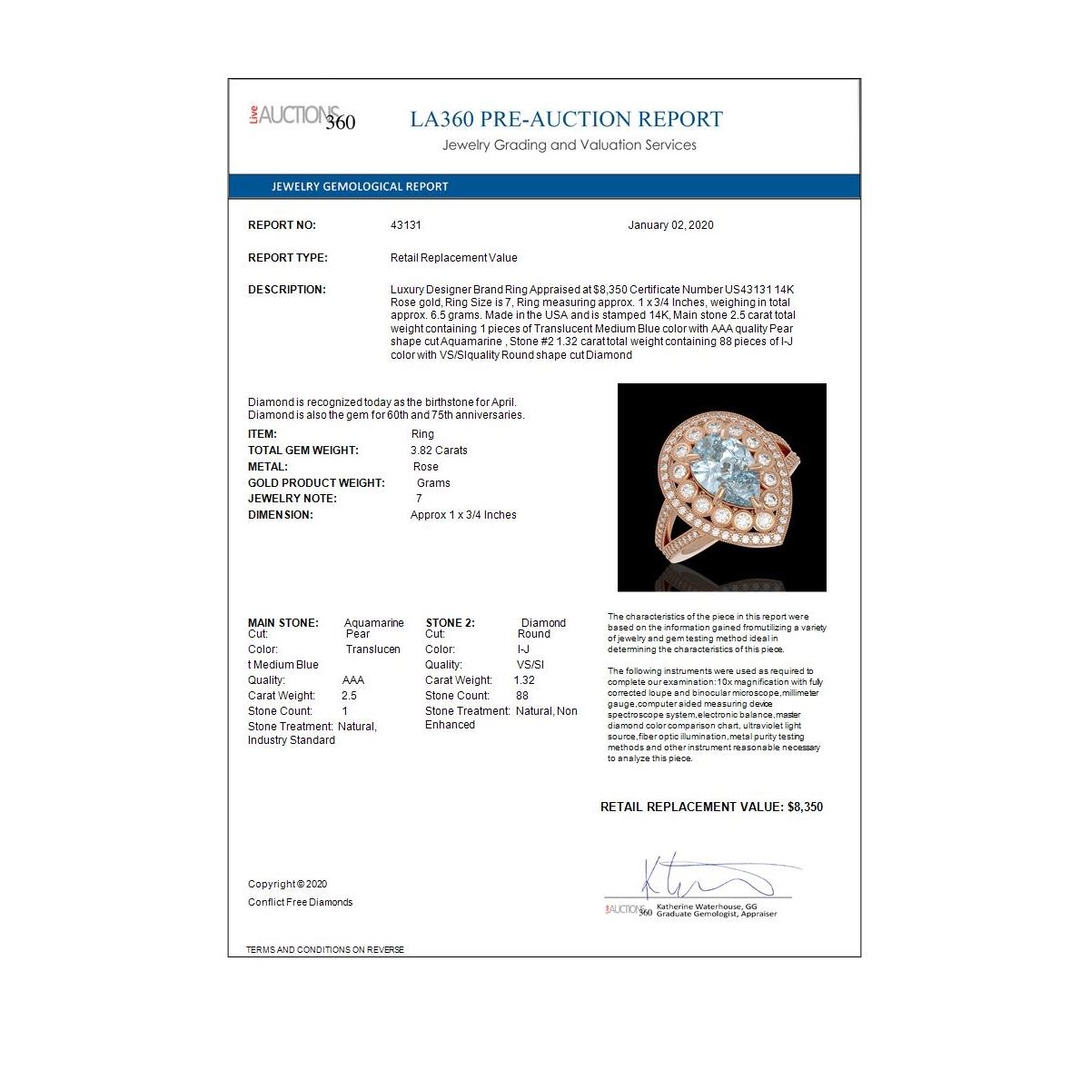 ALL LOTS ARE SOLD "AS IS" "WHERE IS". ALL SALES ARE FINAL. Bidders agree to pay a 19% buyer's premium added to the hammer price of the lot being auctioned. Condition reports and/or Gemological reports in Liquidation catalog are not guaranteed and may vary in accuracy. It is the responsibility of prospective bidders to inspect the goods. All reports, measurements, opinion of values, age and quality are offered not guaranteed. Neither the Liquidation house, nor the consignor, is responsible for the accuracy of printed or verbal descriptions or its authenticity. All jewelry items sold by Federal Government Liquidation are evaluated by third party appraisal firms where certified GIA gemologists evaluate the weight, size and grade of gemstone and/or metal to determine the replacement value of the item. Please be advised that all appraisals are done for insurance purposes only and do not determine the actual value of the jewelry on Liquidation. The appraisals are done for the sole purpose of protecting the buyer in the event of damage or loss of purchased jewelry items from Federal Government Liquidation. Federal Government Liquidation is not responsible for the opinions and appraisals of any third party appraisal firms and their experts.