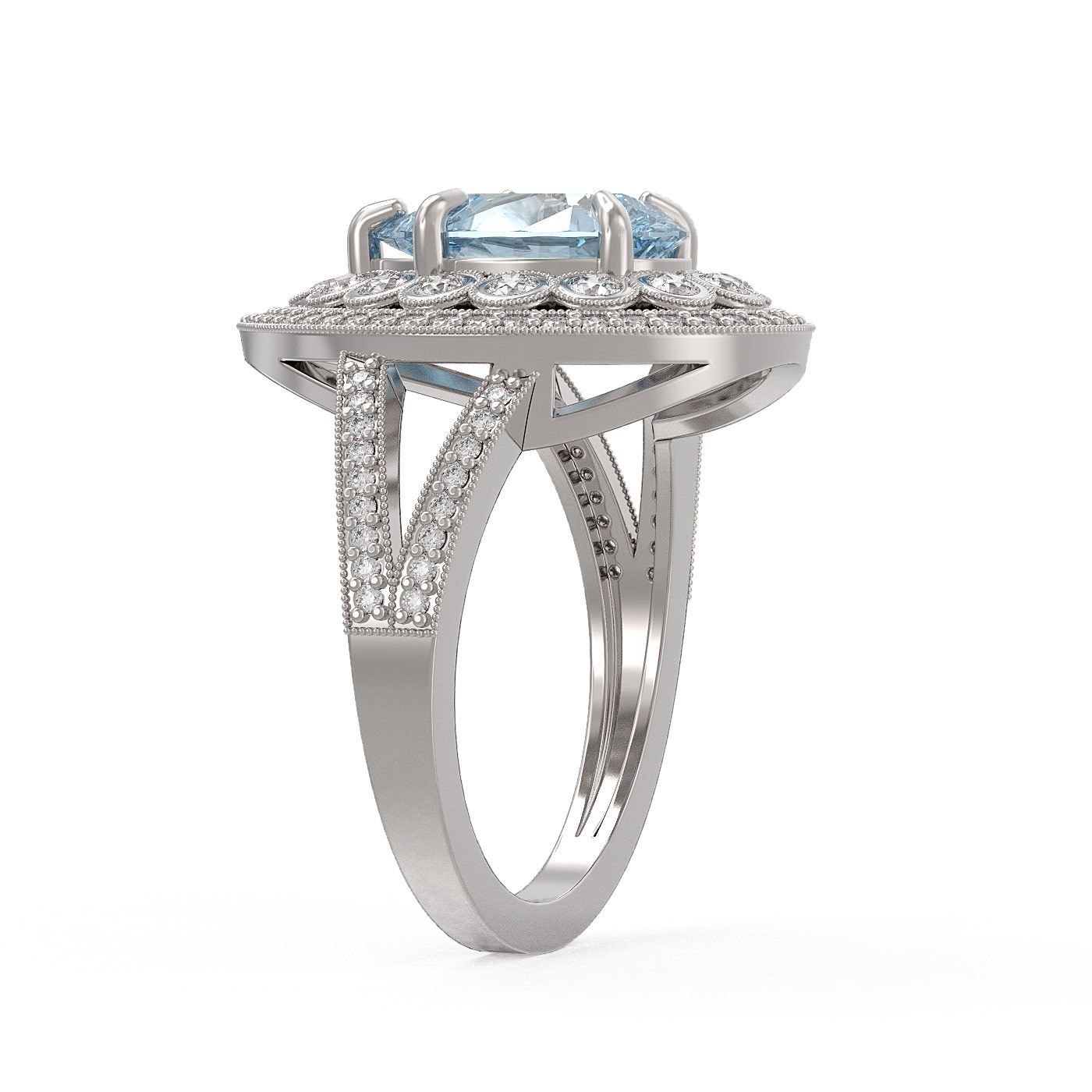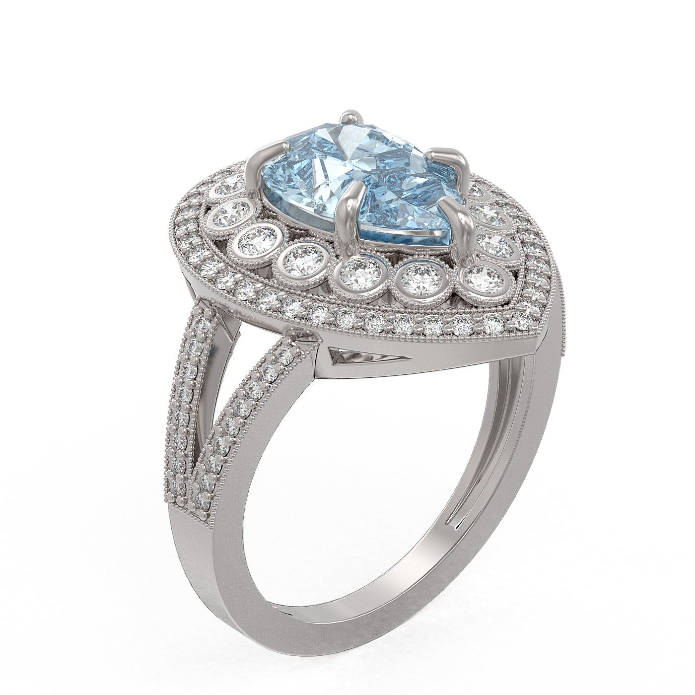 REF-168Y8X - SKU: 43130 ---- 3.82 ctw Certified Aquamarine & Diamond Victorian Ring 14K White Gold