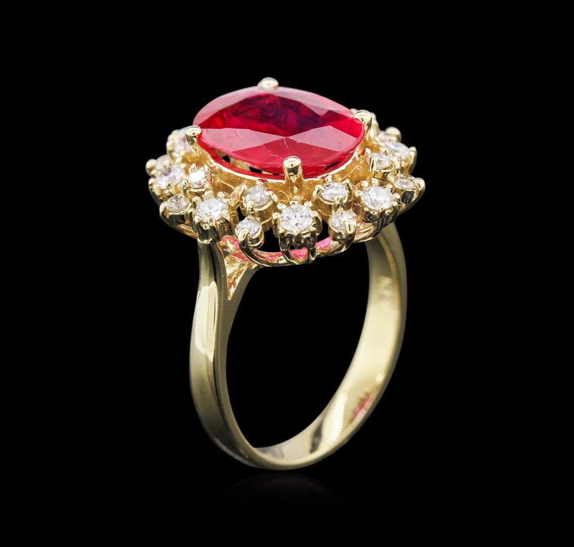 One ring featuring: 14KT yellow gold weighing 5.35 grams containing one ruby center stone with a total weight of 3.82ct and 24 diamonds with a total weight of 0.68ct.