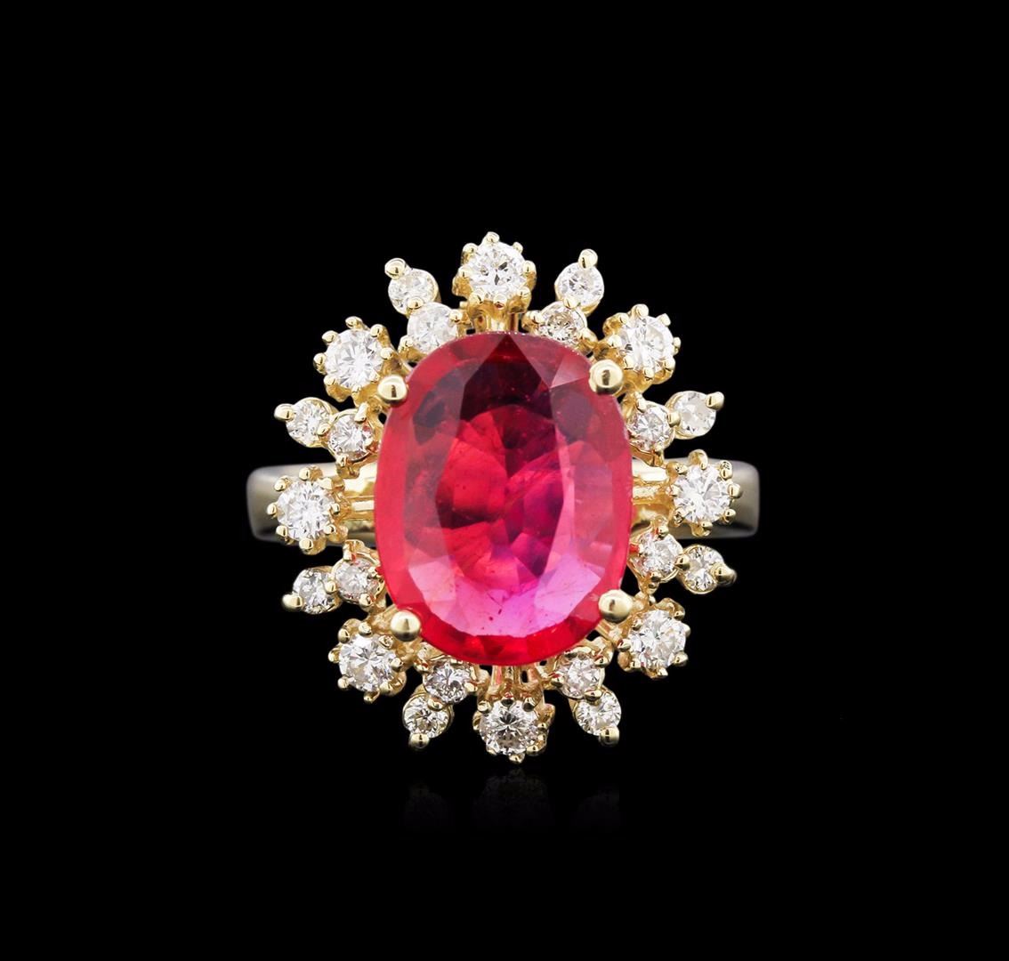 One ring featuring: 14KT yellow gold weighing 5.35 grams containing one ruby center stone with a total weight of 3.82ct and 24 diamonds with a total weight of 0.68ct.