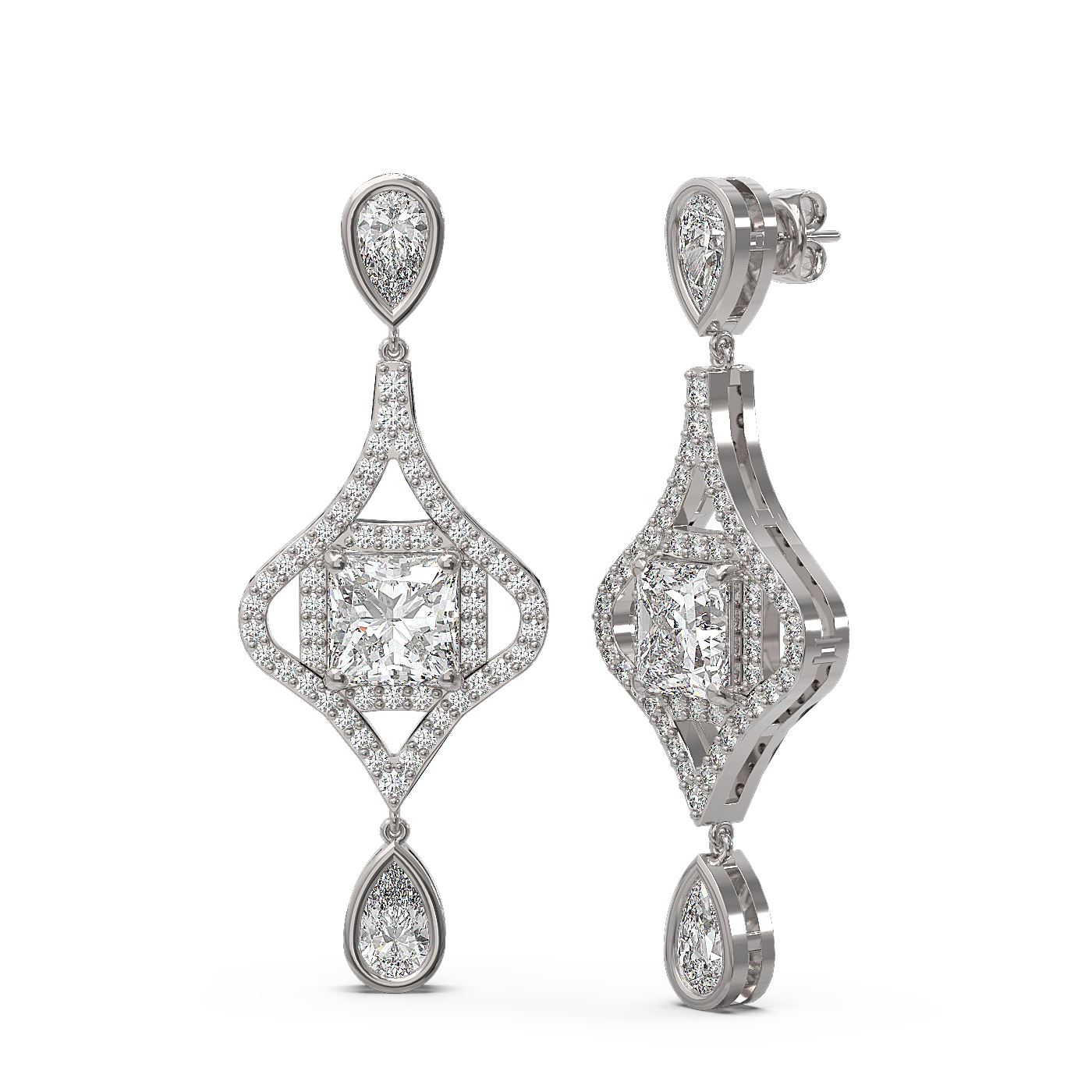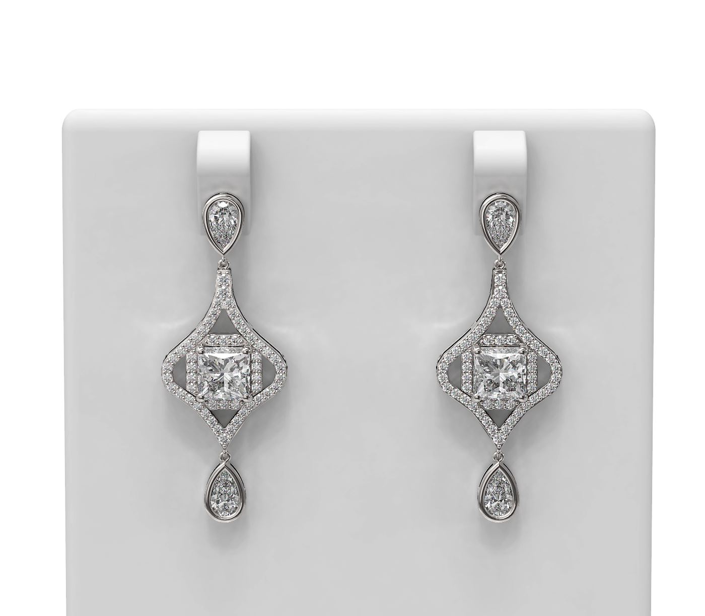 SKU: 55991 ---- 3.83 ctw Princess Diamond Earrings 18K White Gold
