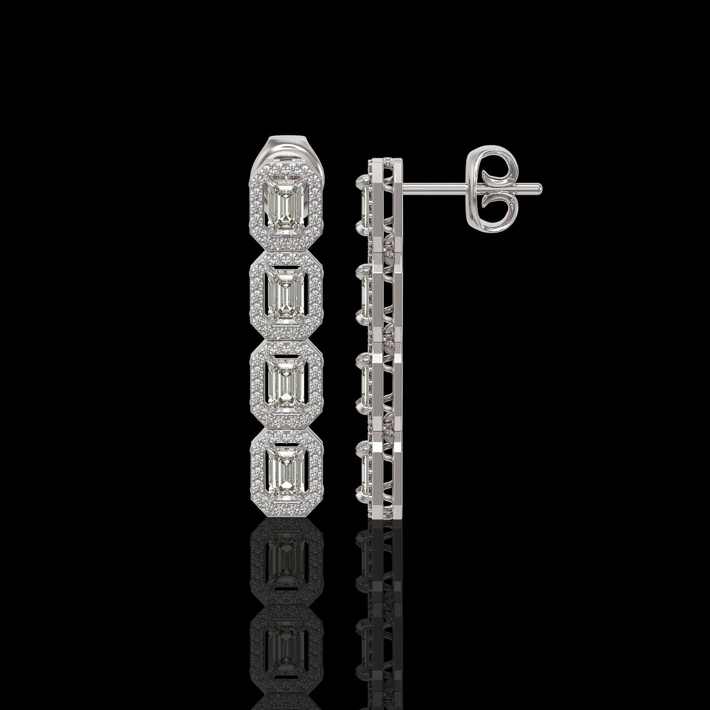 REF-459Y8X - SKU: 42935 ---- 3.84 ctw Emerald Cut Diamond Micro Pave Earrings 18K White Gold