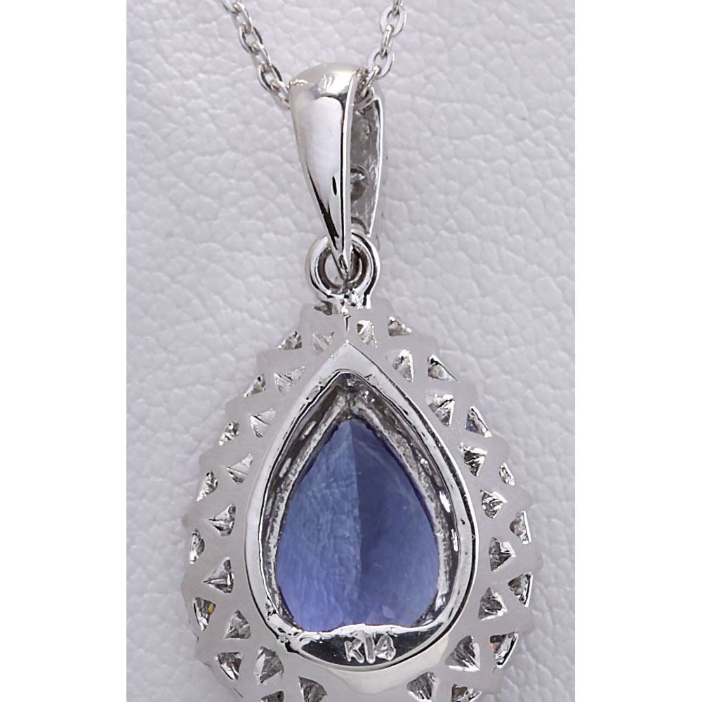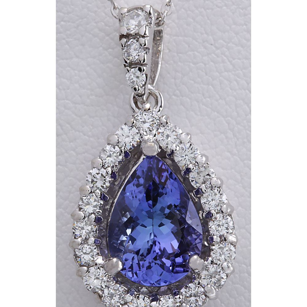 3.85 CTW Natural Tanzanite And Diamond Pendant In 14K Solid White Gold