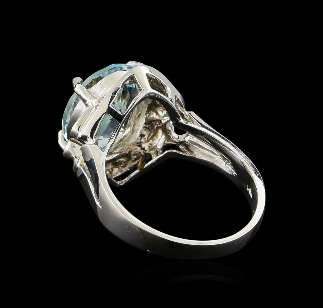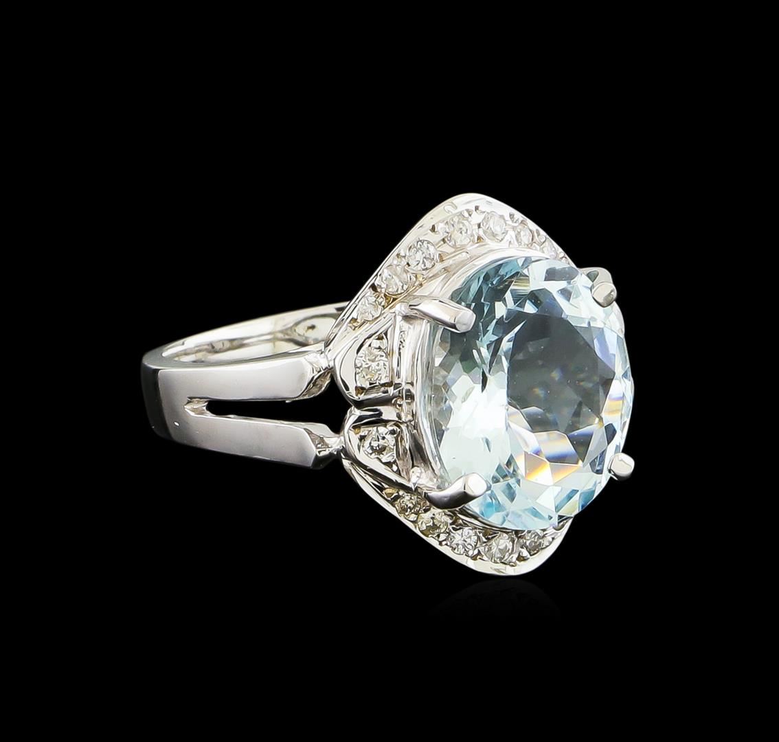 One Ring featuring: 14KT White Gold weighing 4.72 grams containing one Aquamarine center stone with a total weight of 3.85ct and Diamonds with a total weight of 0.19ct.