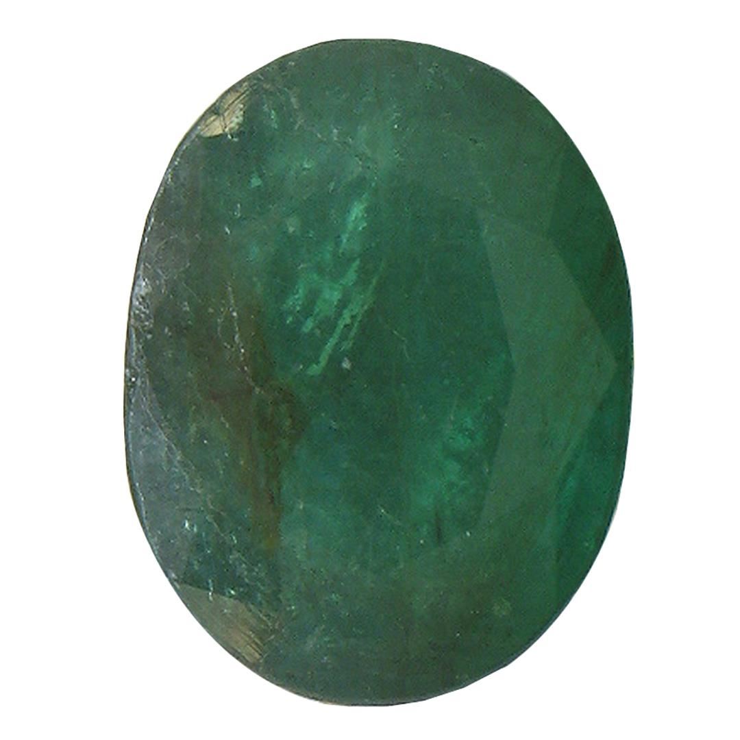 One oval mixed cut natural emerald exact weight 3.85ct., clarity is heavily included, type III, medium dark, very slightly grayish, very slightly bluish green color, (GIA vslbG 6/3), cut is good. Westfield Appraised at $1,765.00.