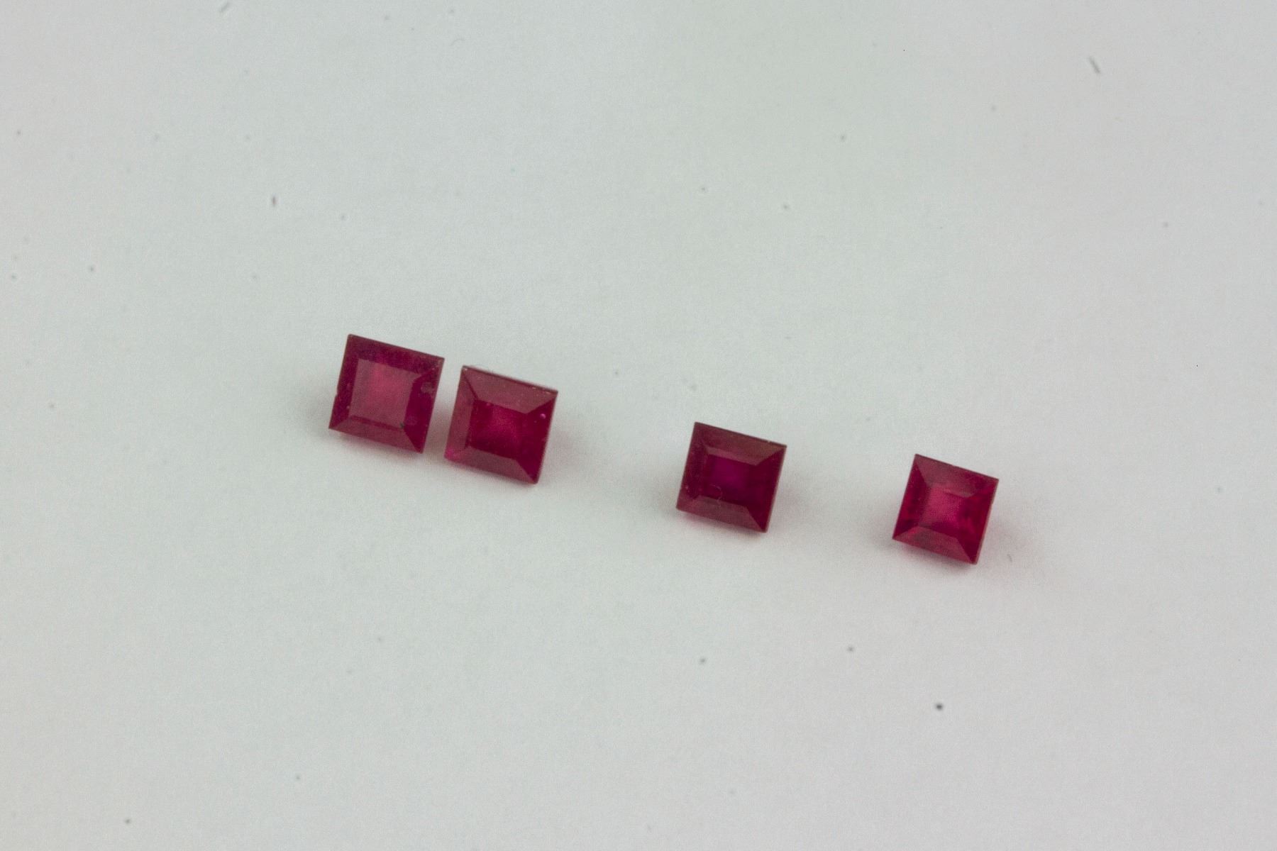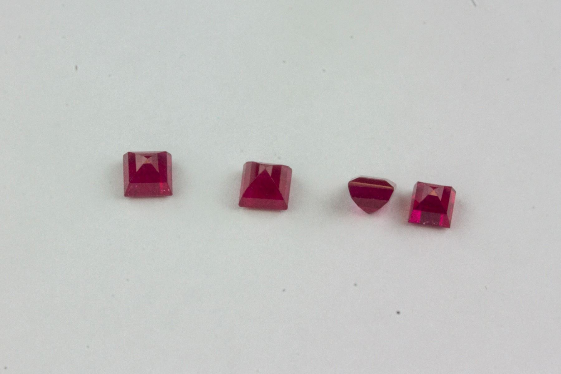 4 pieces of genuine princess cut ruby gemstones; replacement value $ 400, 3.85 ct