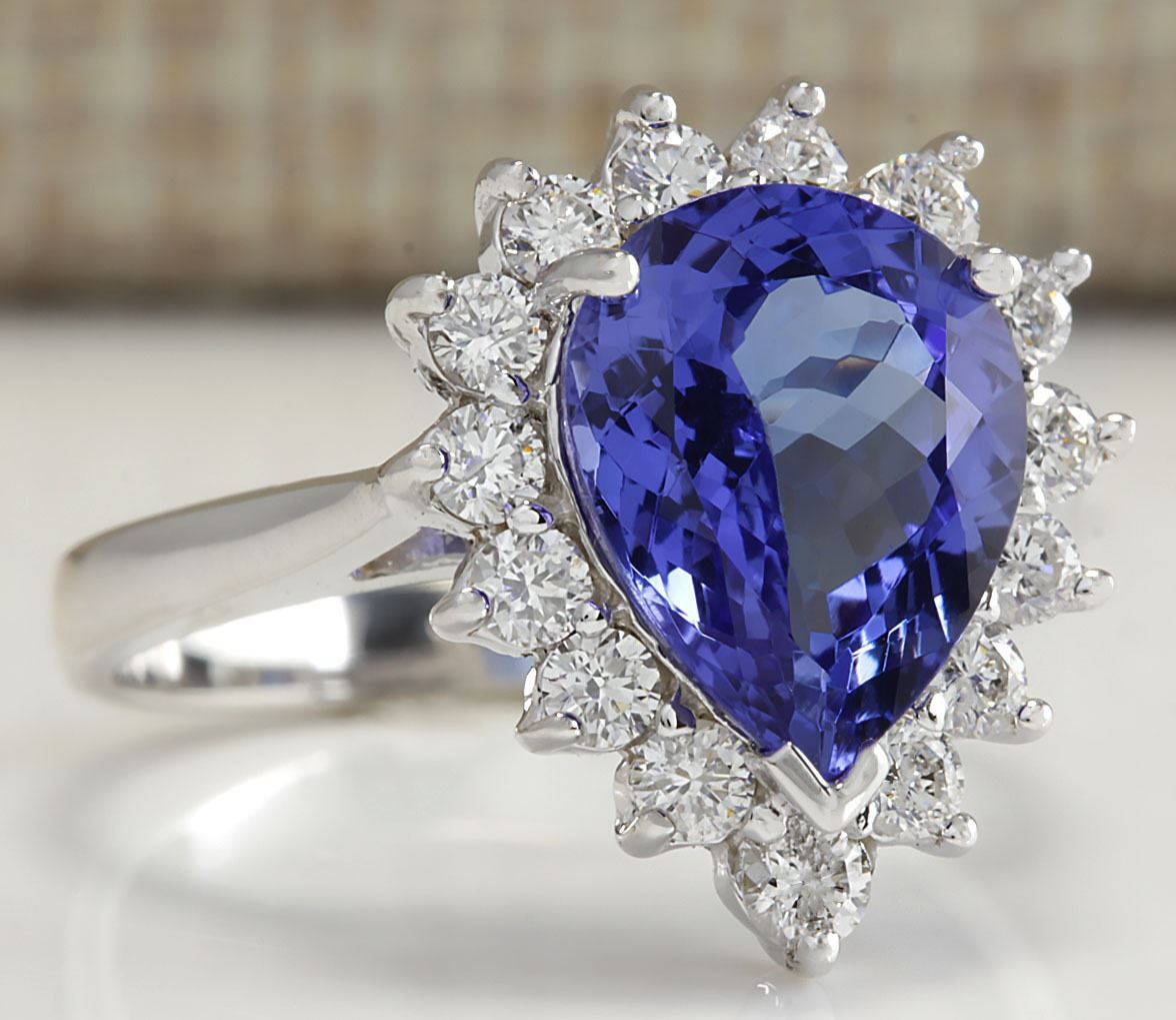 3.86 CTW Natural Blue Tanzanite And Diamond Ring 14K Solid White Gold