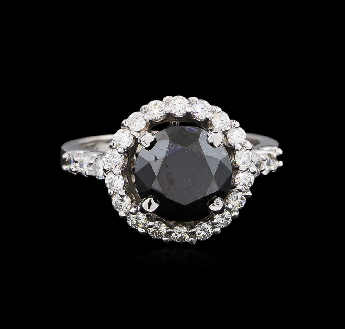 One ring featuring: 14KT white gold weighing 4.40 grams containing one black diamond with a total weight of 3.20ct and side diamonds with a total weight of 0.66ct.