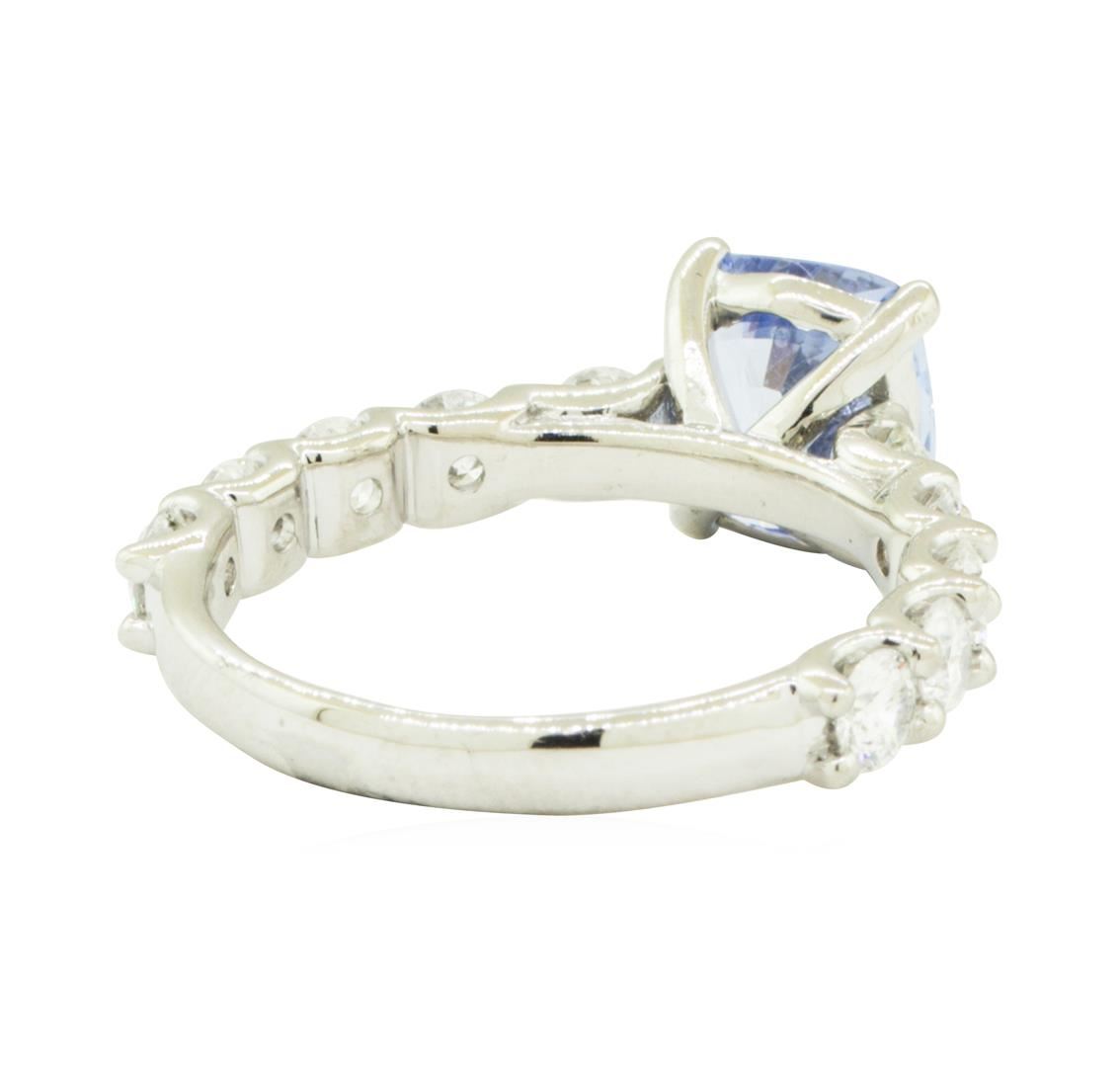One electronically tested 14KT white gold lady's cast fashion straight line ring with a cathedral shank with a bright polish finish. The featured lady's ring has a shank measuring 2.75 millimeters in width. Identified with markings of '14K'. Condition is