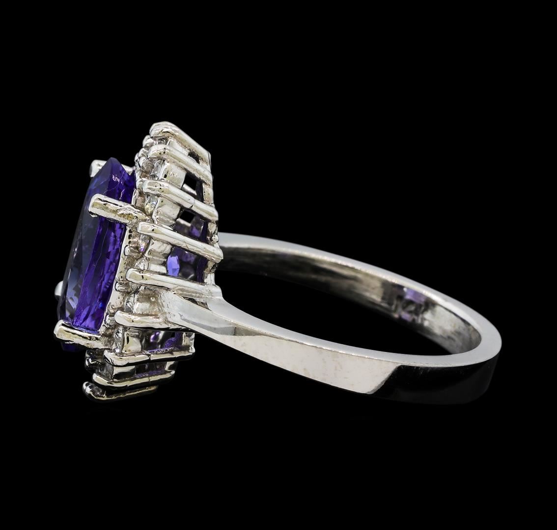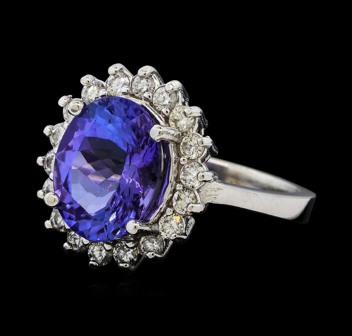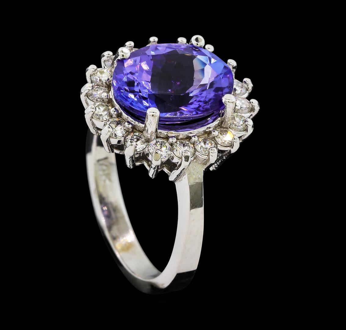 One Tanzanite and Diamond Ring including: 14KT White Gold weighing a total of 5.42 grams, Tanzanite weighing a total of 3.86ct, and 18 Diamonds weighing a total of 0.58ctw.