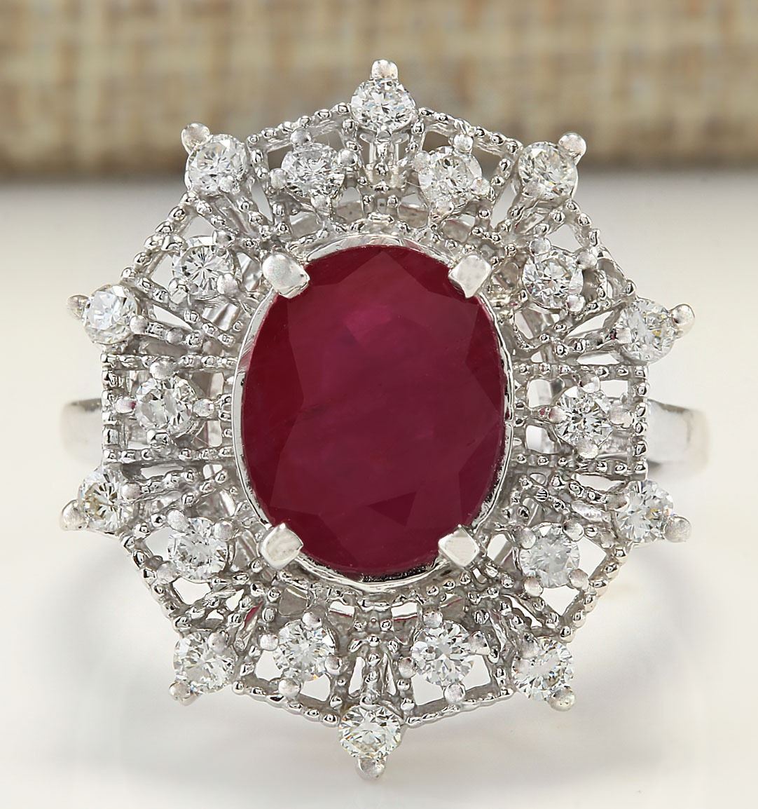 3.87 CTW Natural Ruby And Diamond Ring In 18K White Gold