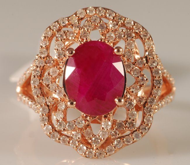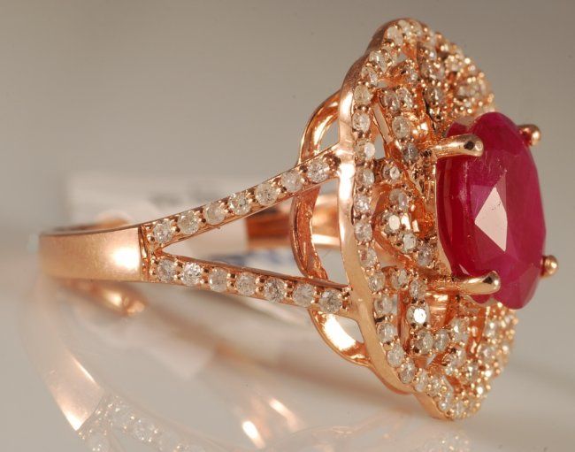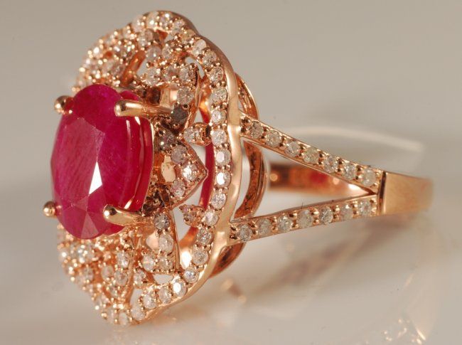 3.14 Carat Ruby and 0.73 Carat Diamond Ring 14K Pink Gold (5.20 Grams) Condition: New