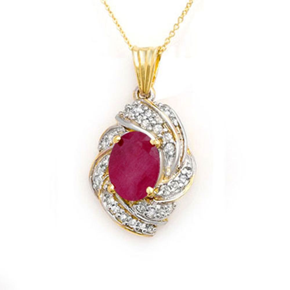 REF-85H5R - SKU: 14361 ---- 3.87 ctw Ruby & Diamond Pendant 14k Yellow Gold