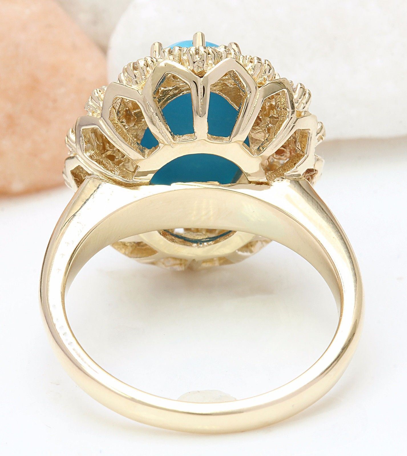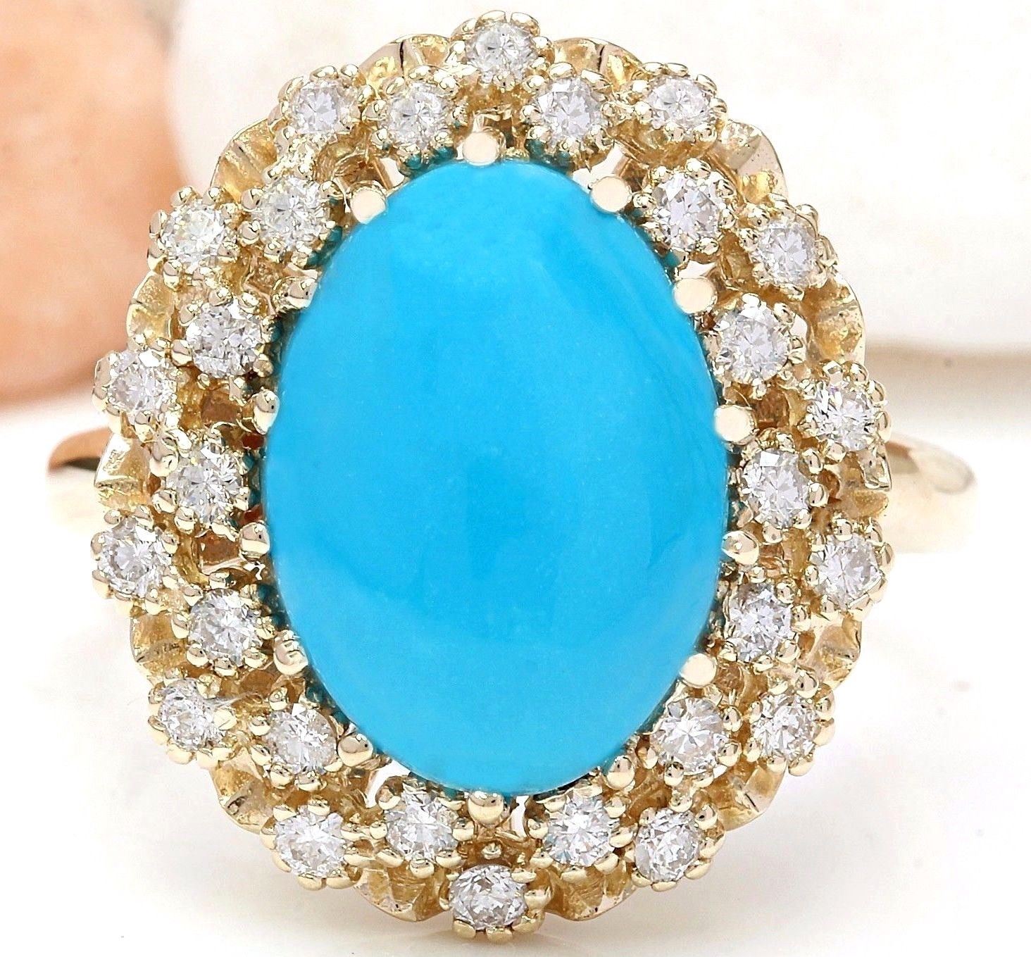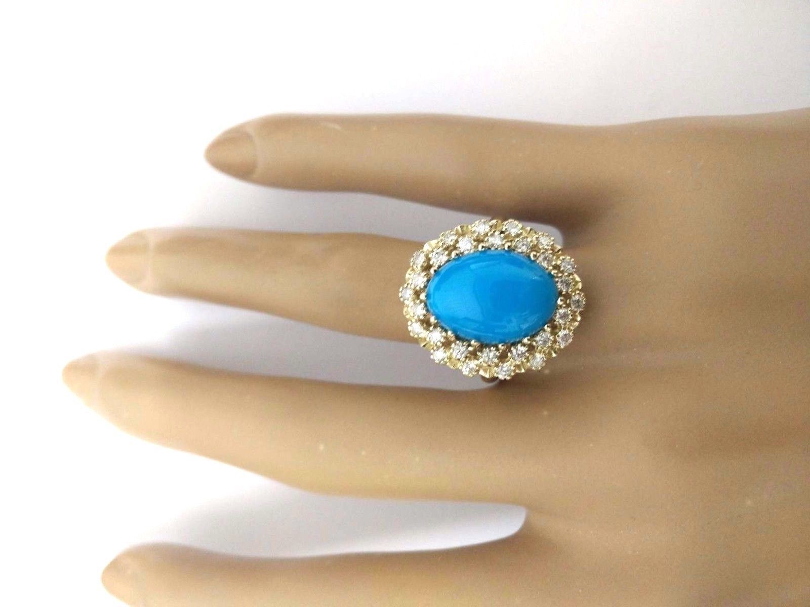 3.88 Carat Natural Turquoise 14K Solid Yellow Gold Diamond Ring