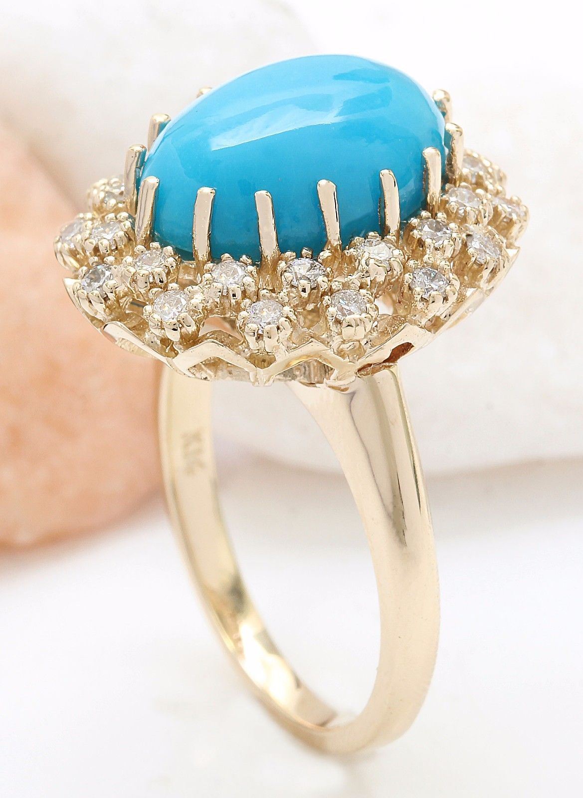 3.88 Carat Natural Turquoise 14K Solid Yellow Gold Diamond Ring