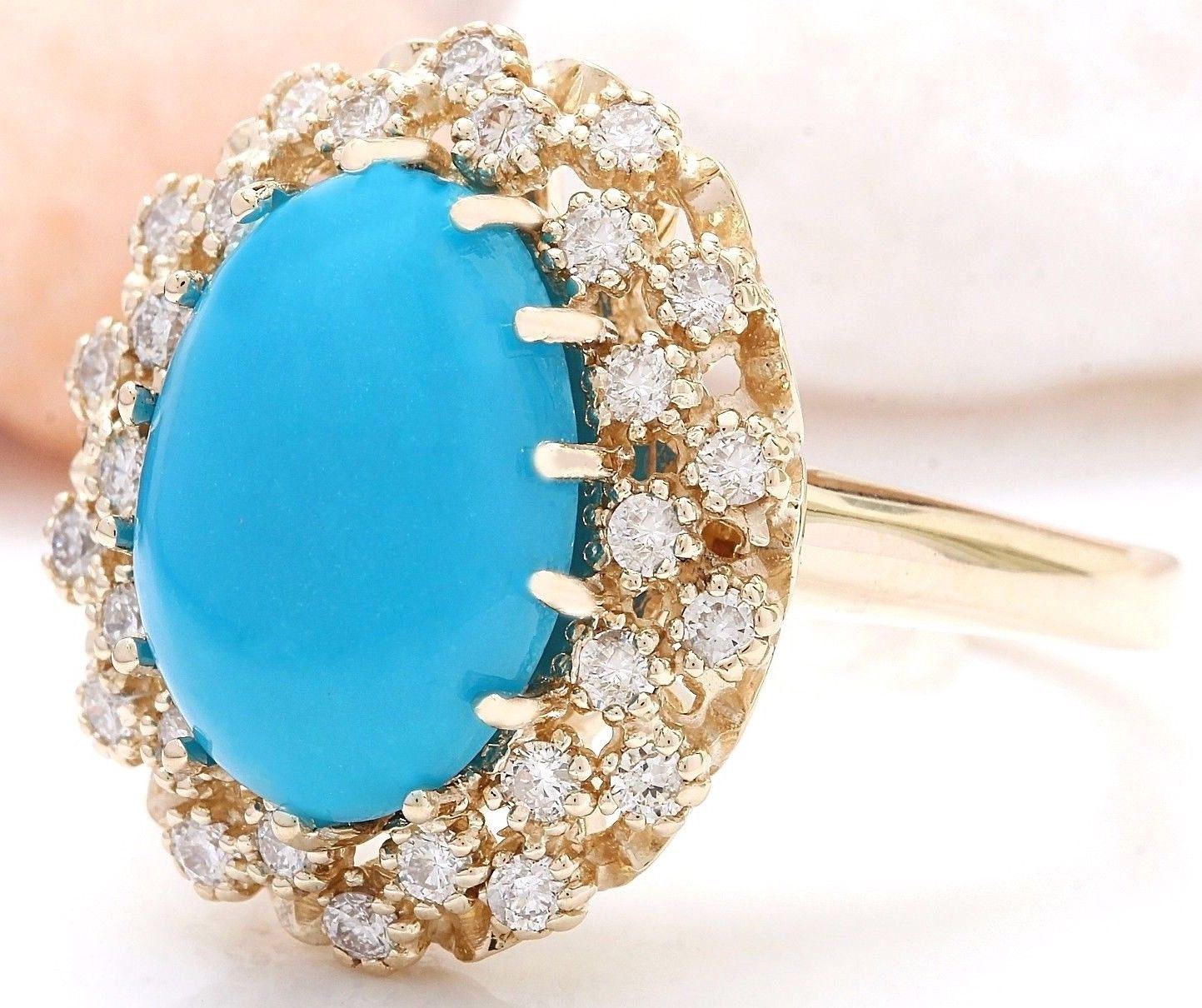 3.88 Carat Natural Turquoise 18K Solid Yellow Gold Diamond Ring