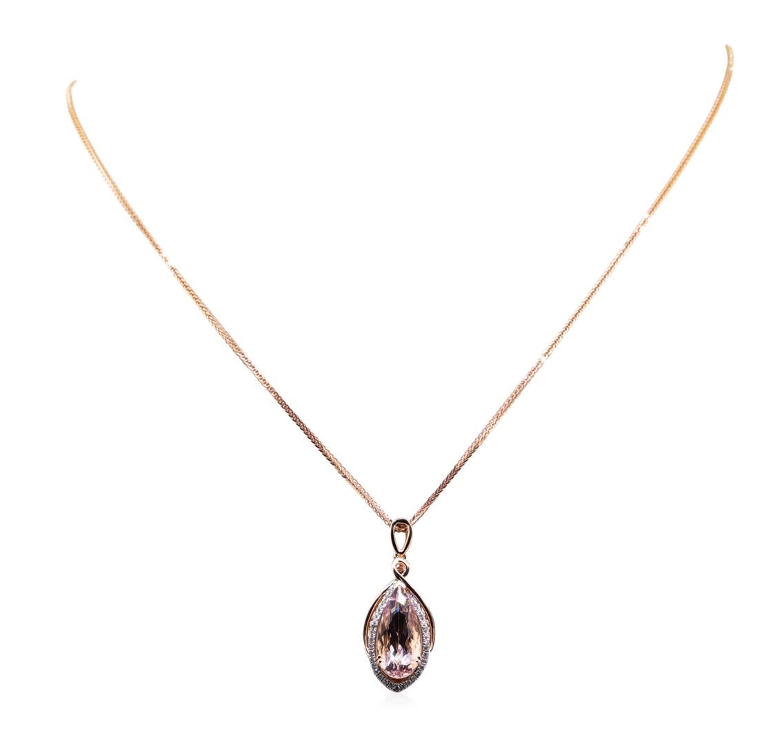 One 3.88ct Morganite and Diamond Pendant With Chain - 14KT Rose Gold. AIG certified. See Appraisal for more details. AIG Appraised.