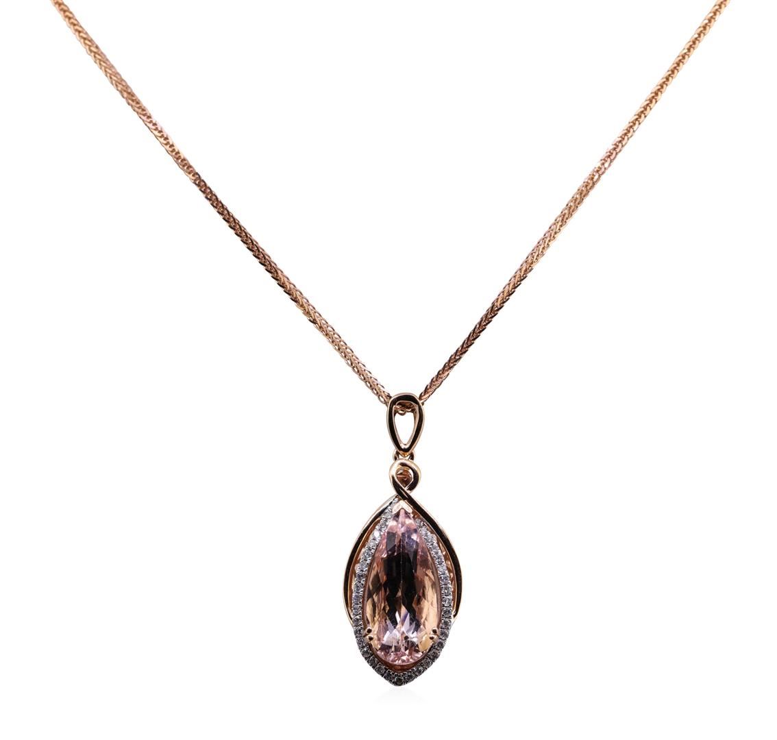 One 3.88ct Morganite and Diamond Pendant With Chain - 14KT Rose Gold. AIG certified. See Appraisal for more details. AIG Appraised.