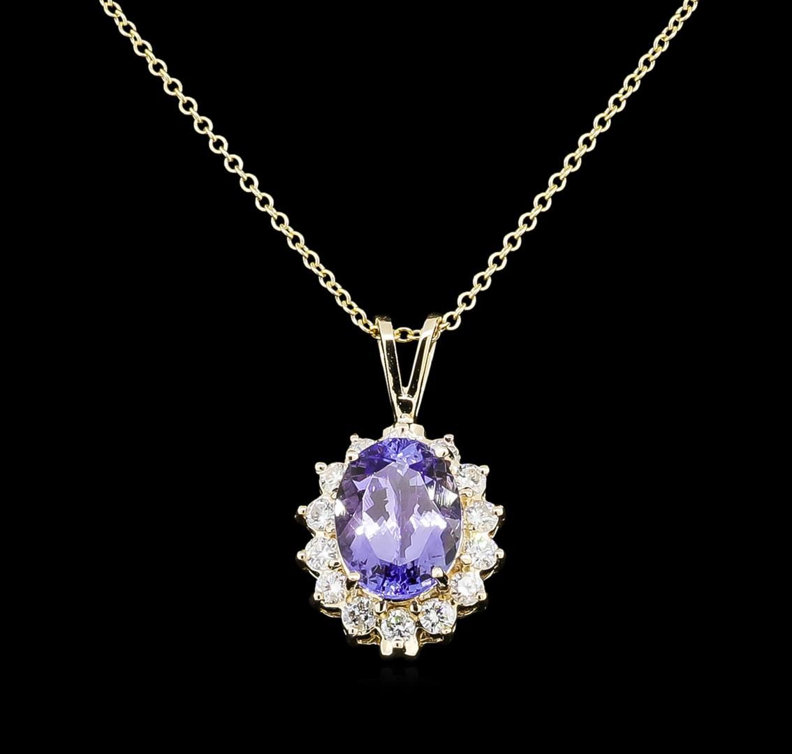 One pendant with chain : 14KT yellow gold weighing 2.17gm containing one tanzanite stone with a total weight of 3.88ct. and diamonds weighing 0.65ctw.