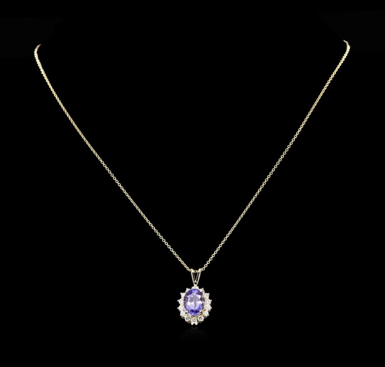 One pendant with chain : 14KT yellow gold weighing 2.17gm containing one tanzanite stone with a total weight of 3.88ct. and diamonds weighing 0.65ctw.