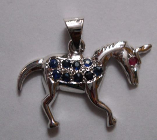3.880g Horse Shape Pendant of Sapphire and Ruby Sterling Silver