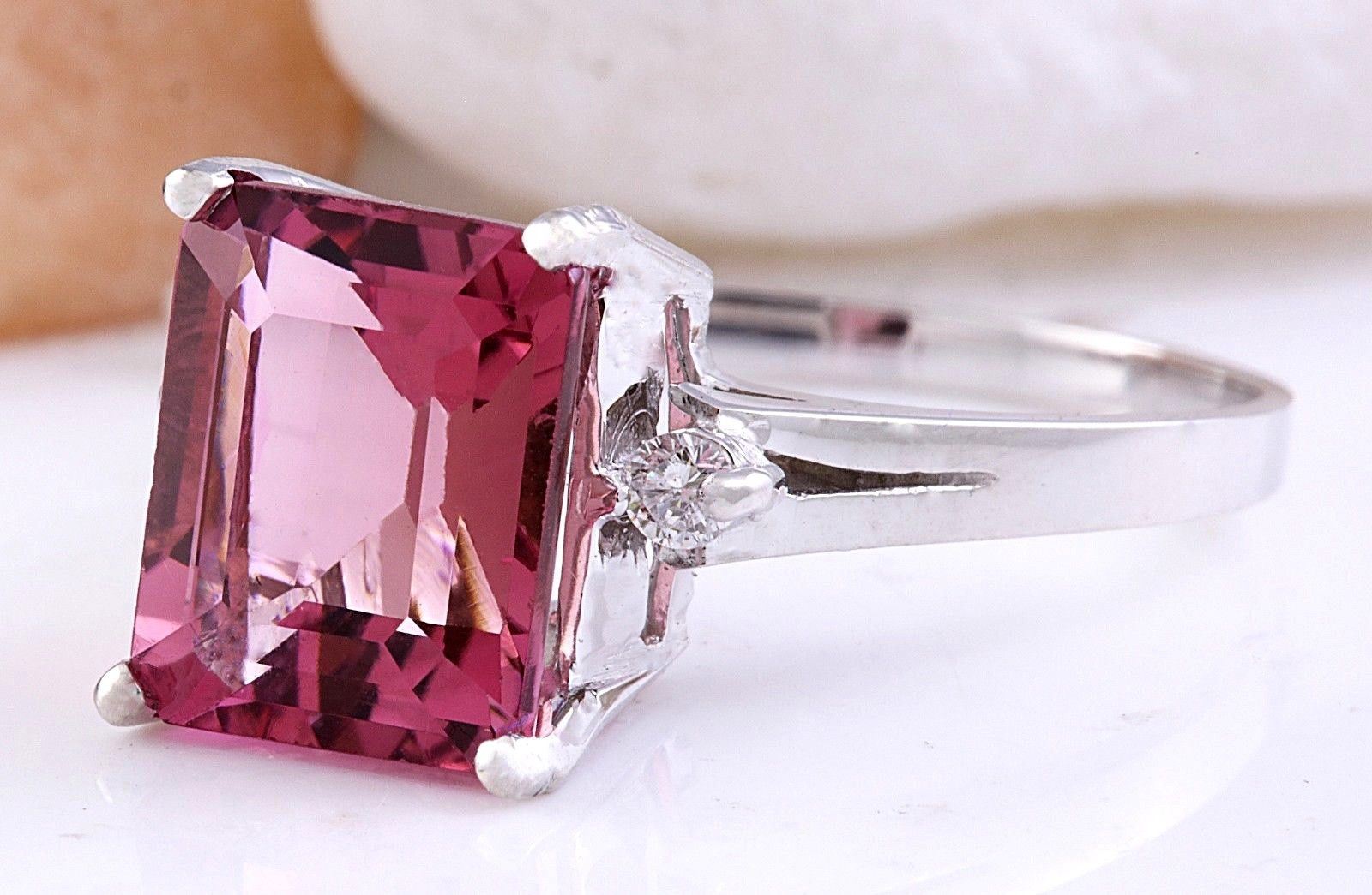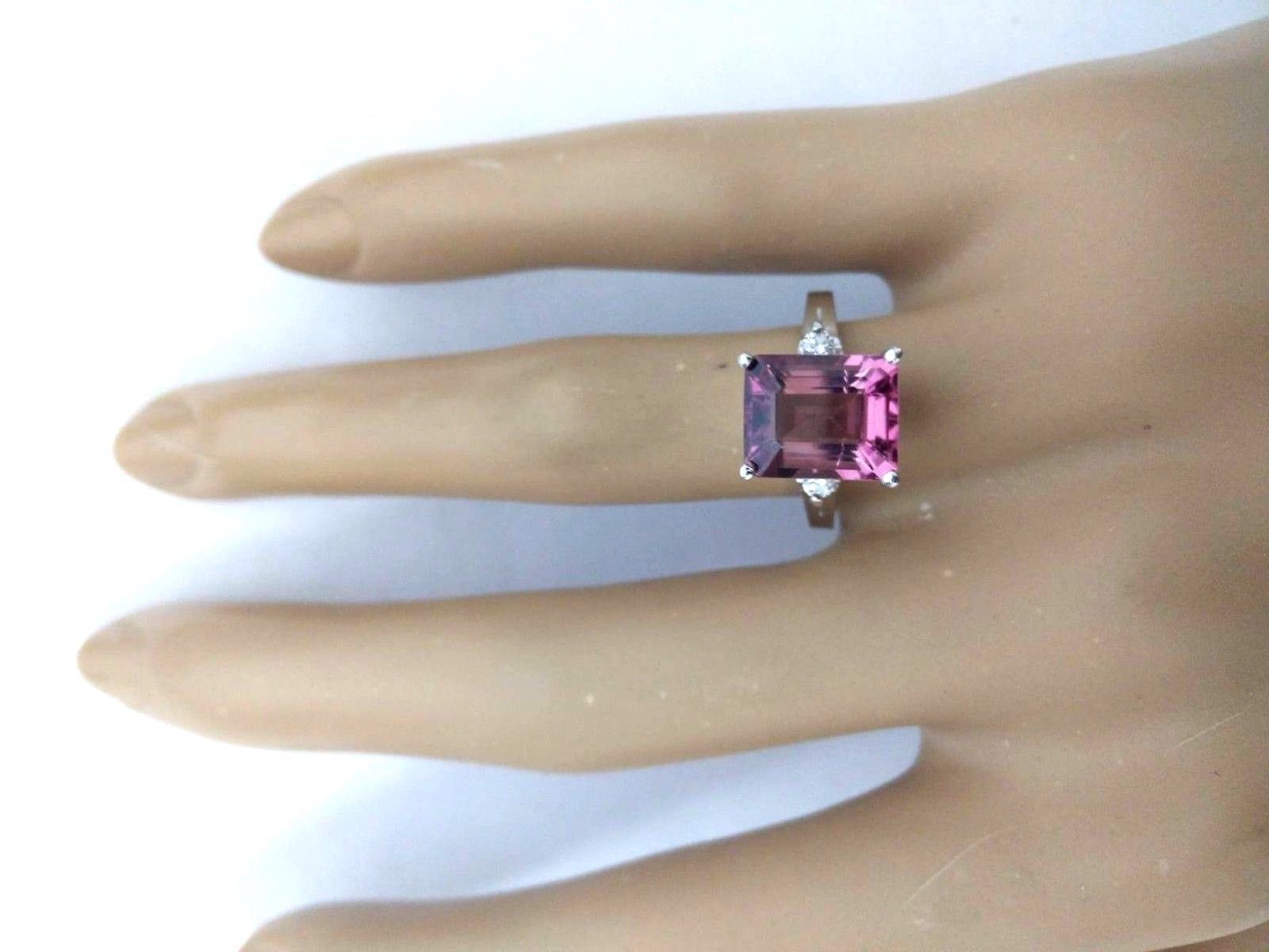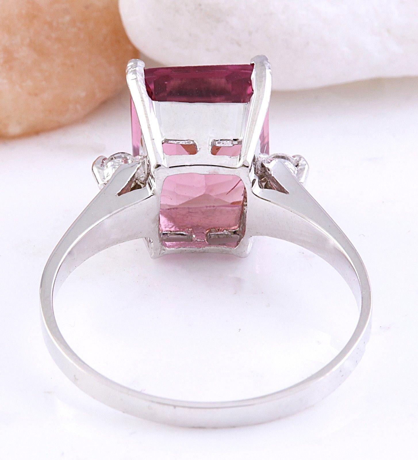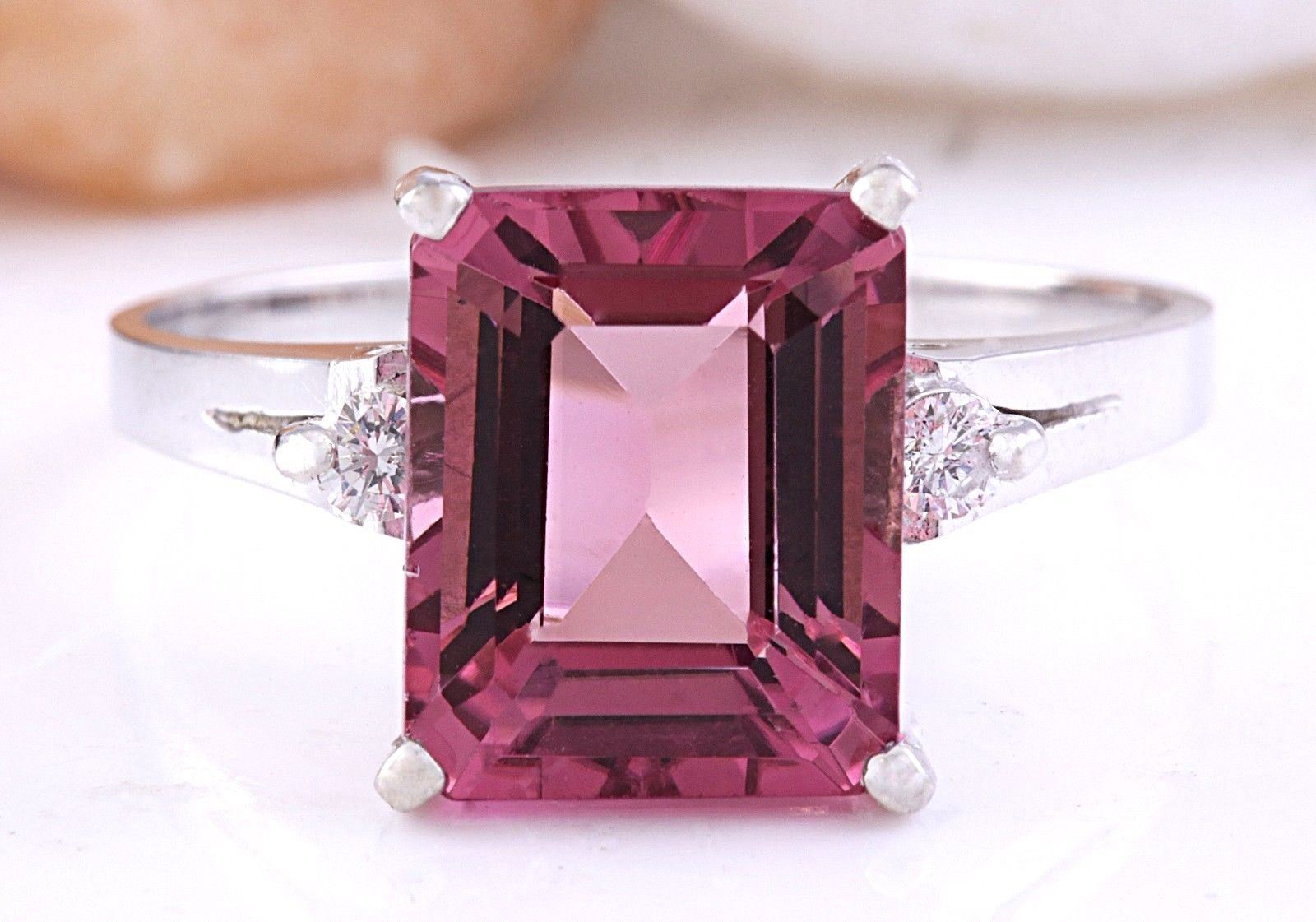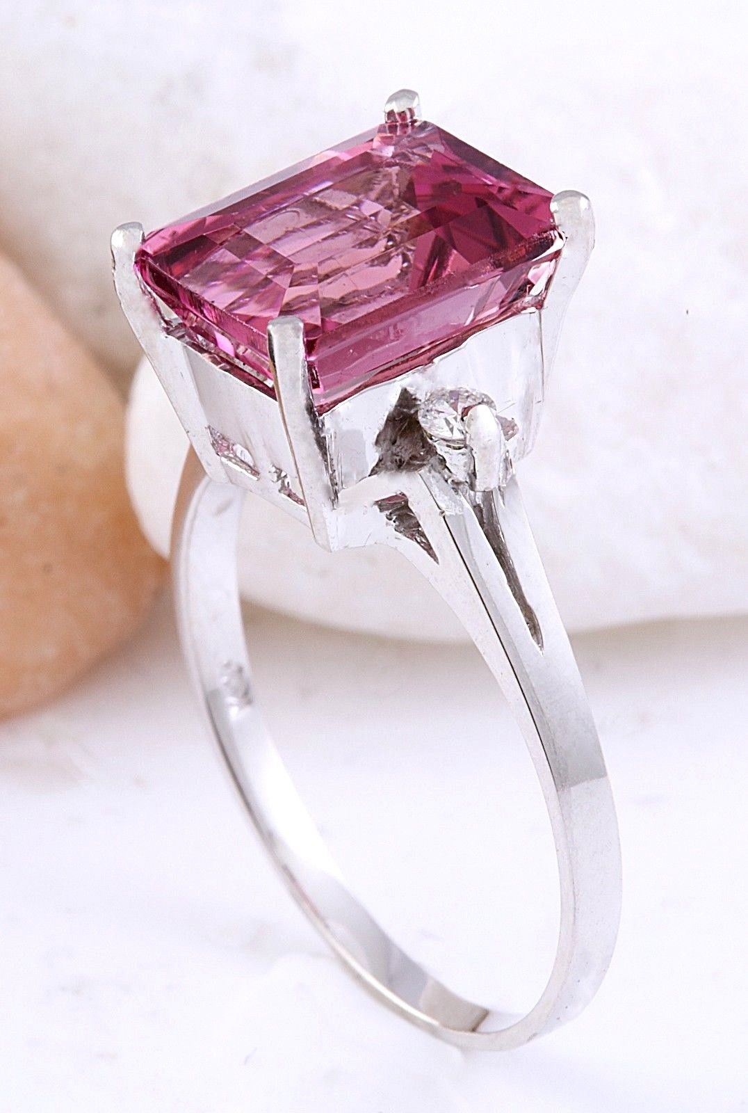 3.89 Carat Natural Tourmaline 14K Solid White Gold Diamond Ring