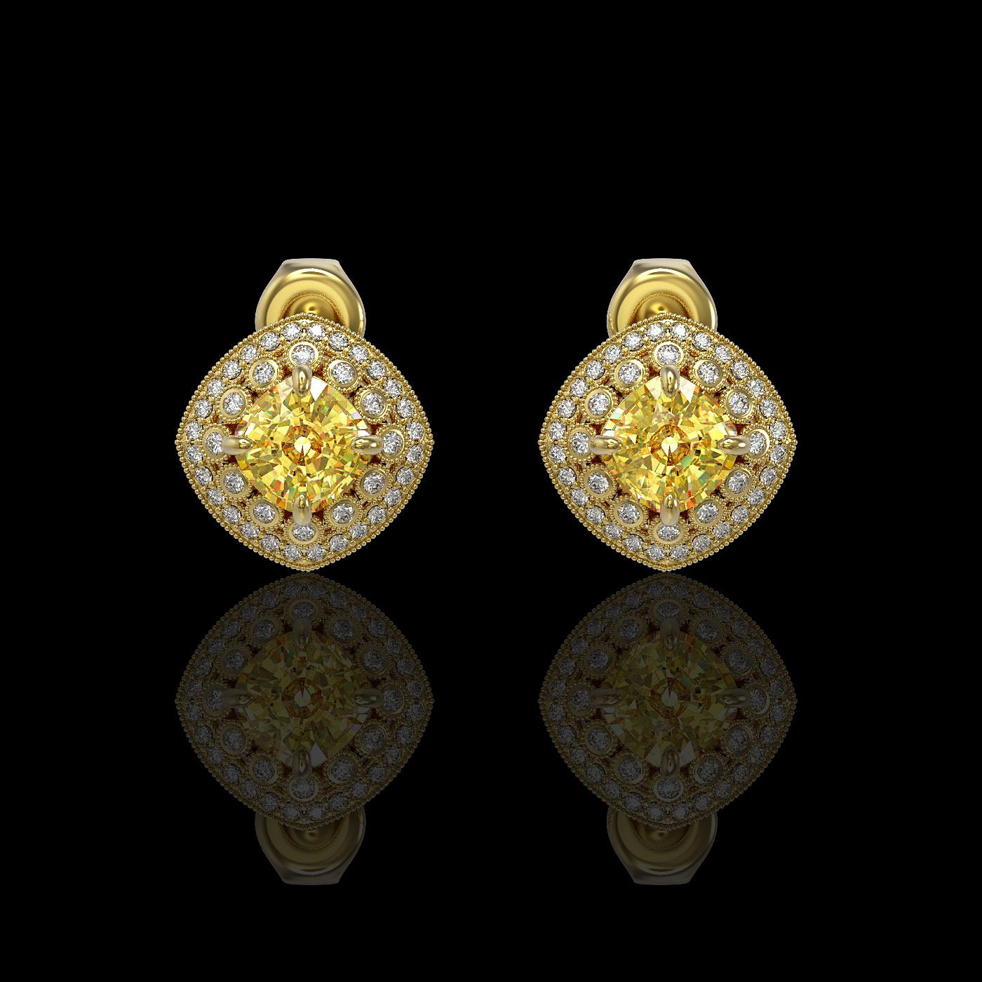 REF-108G5W - SKU: 44137 ---- 3.89 ctw Canary Citrine & Diamond Victorian Earrings 14K Yellow Gold