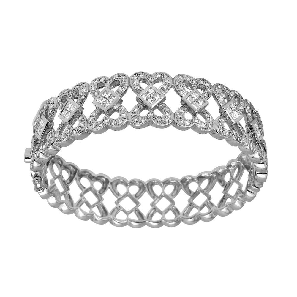 REF-439F2N - JF264185 ---- 3.9 CTW White Round Diamond & Princess Diamond Bangle 14K White Gold
