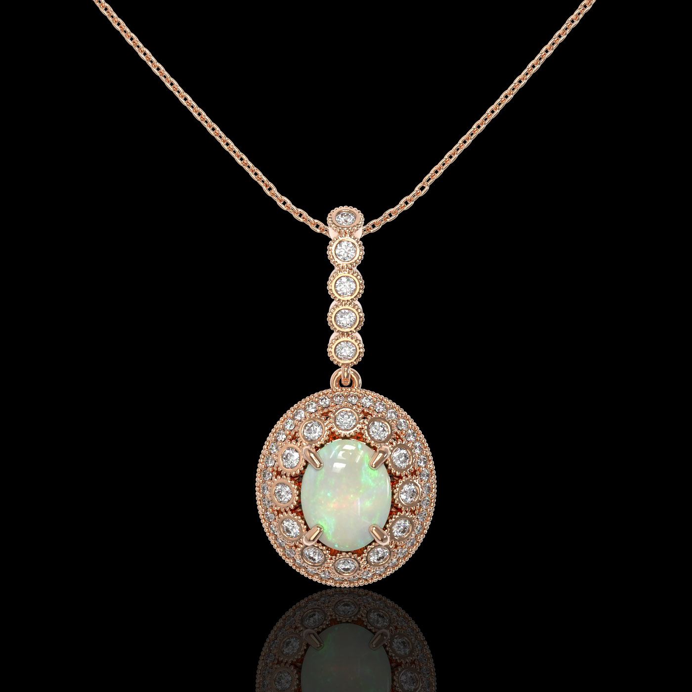 REF-139W8H - SKU: 43674 ---- 3.9 ctw Certified Opal & Diamond Victorian Necklace 14K Rose Gold