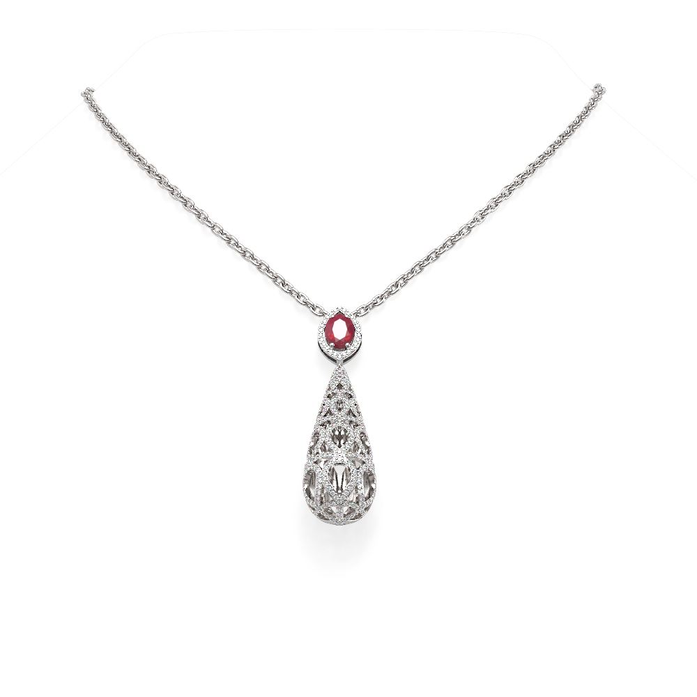 SKU: 56402 ---- 3.9 ctw Ruby & Diamond Necklace 18K White Gold