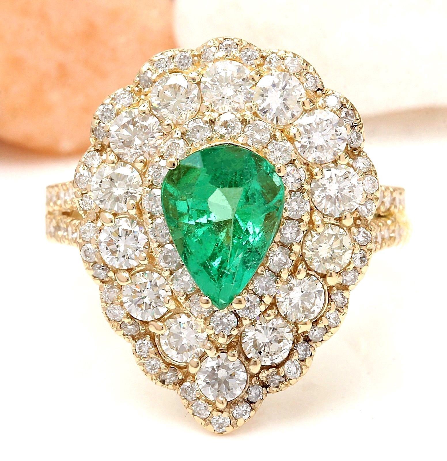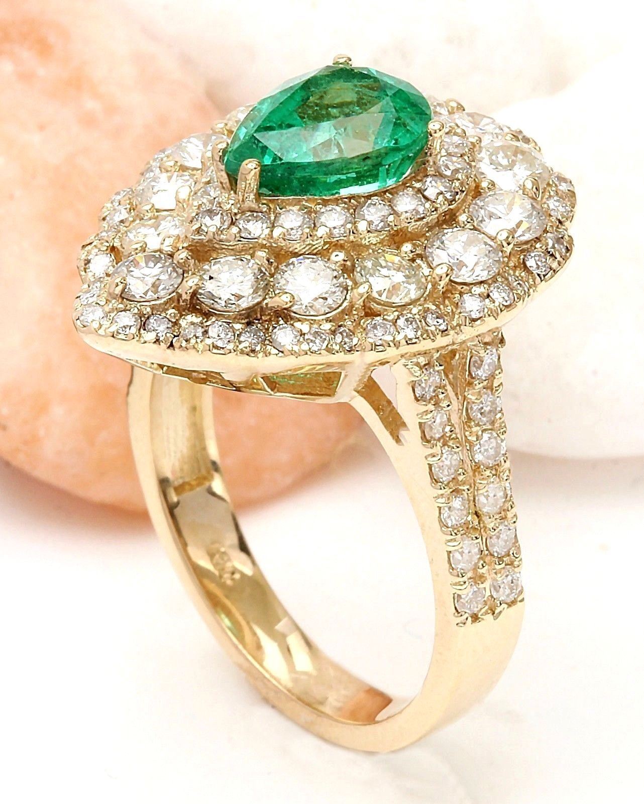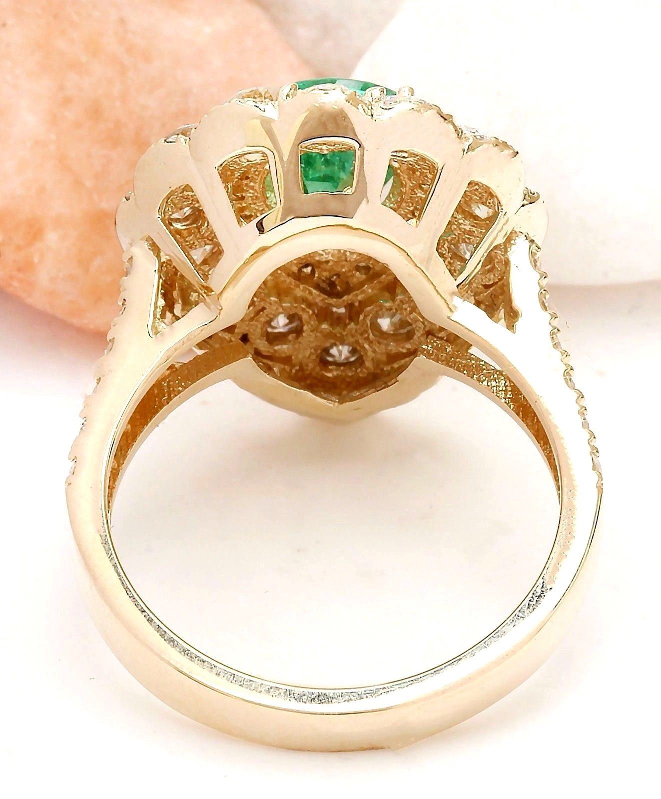 3.90 Carat Natural Emerald 14K Solid Yellow Gold Diamond Ring
