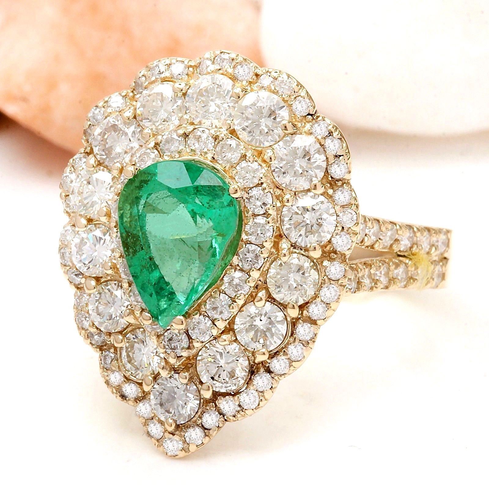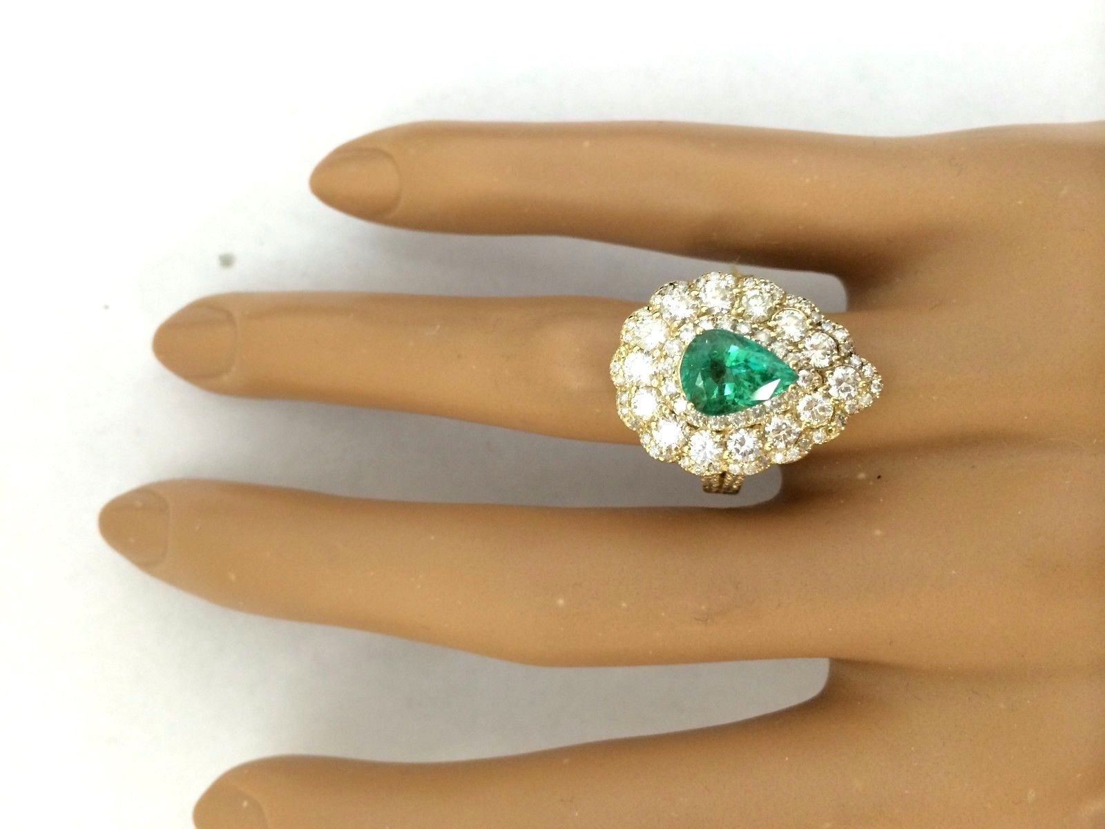 3.90 Carat Natural Emerald 14K Solid Yellow Gold Diamond Ring