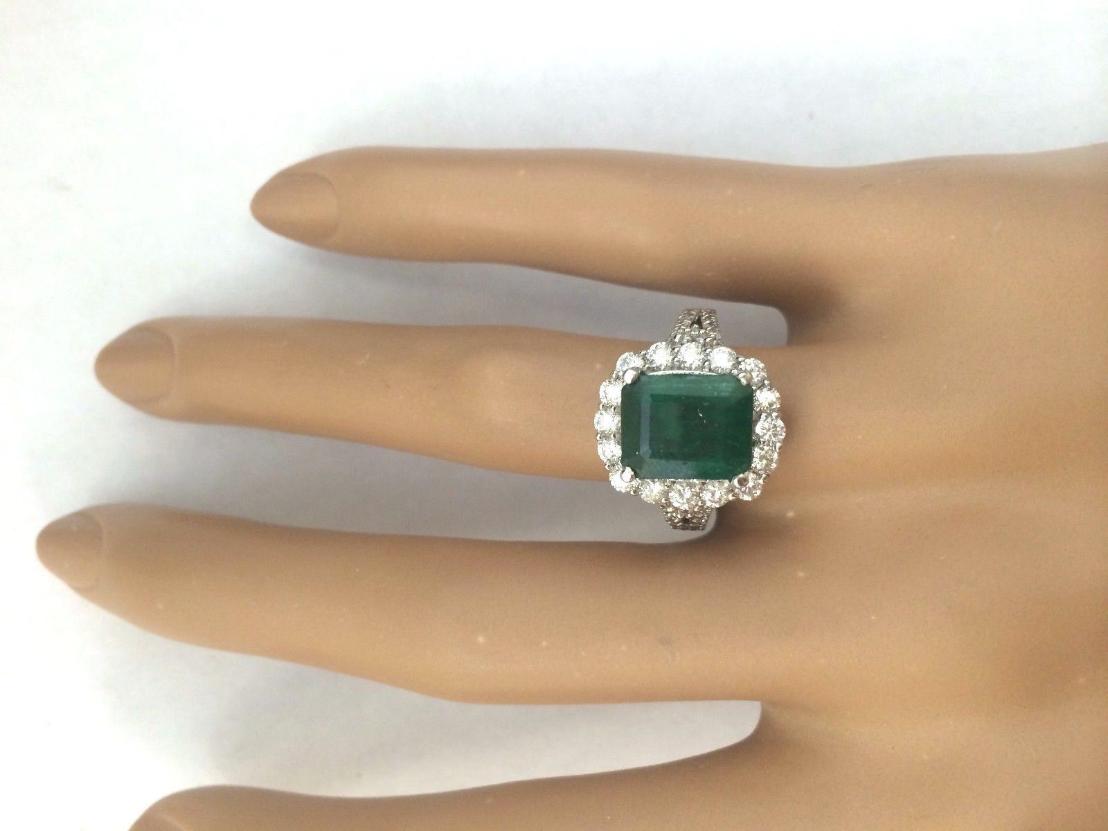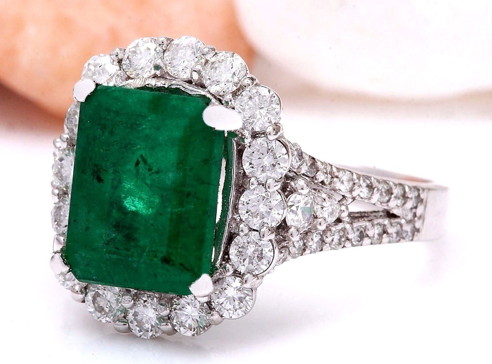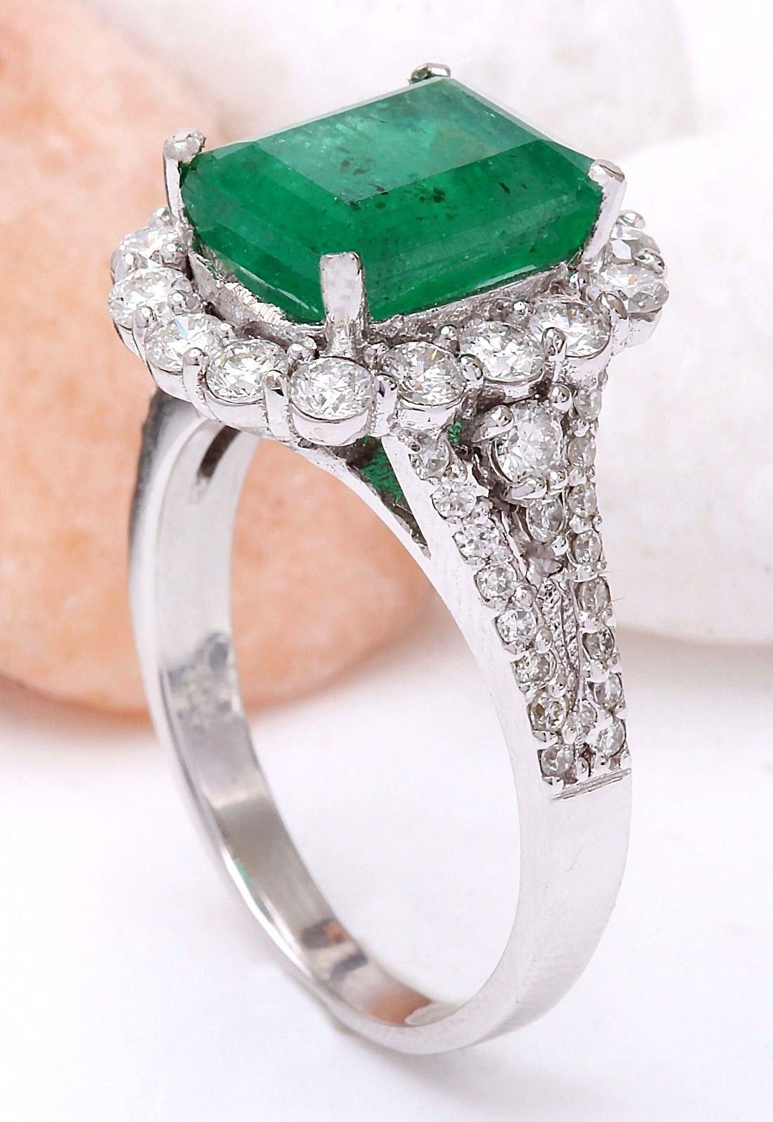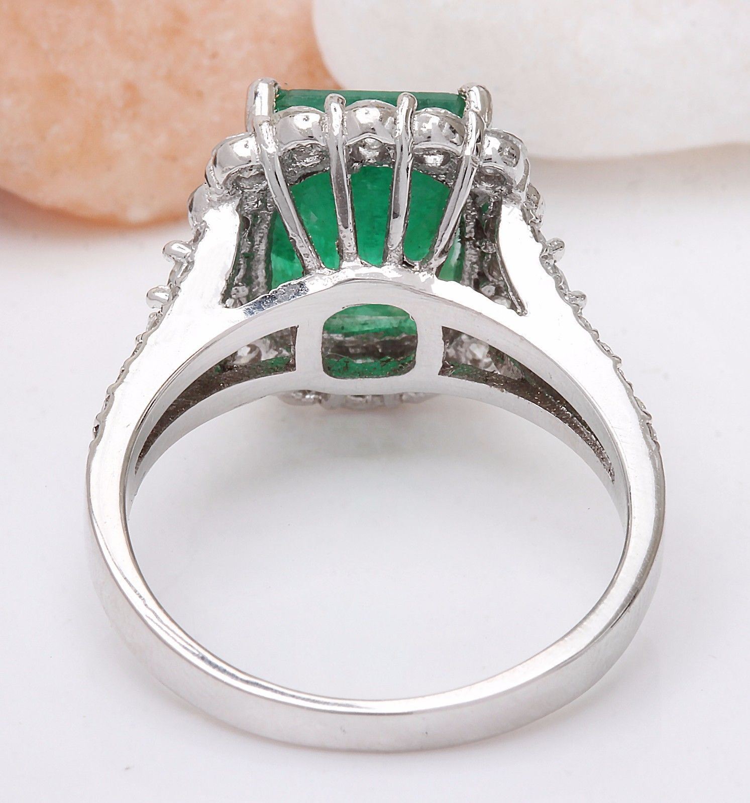 3.90 Carat Natural Emerald 18K Solid White Gold Diamond Ring