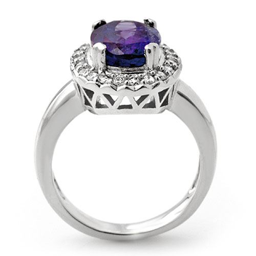3.90 CTW Tanzanite & Diamond Ring 18K White Gold ---- Luxury Designer Brand Ring Appraised Retail Price at $11,050 ---- SKU Number US11904 18k White gold Ring Size is 7, Ring measuring approx. 1/2" x 7/16" , weighing in total approx. 6.7 grams. Made in the USA and is stamped 18k, Main stone 3.5 carat total weight containing 1 pieces of Intense Violet Blue color with AAA quality Oval shape cut Tanzanite , Stone #2 0.4 carat total weight containing 22 pieces of H-I color with VS/SI quality Round shape cut