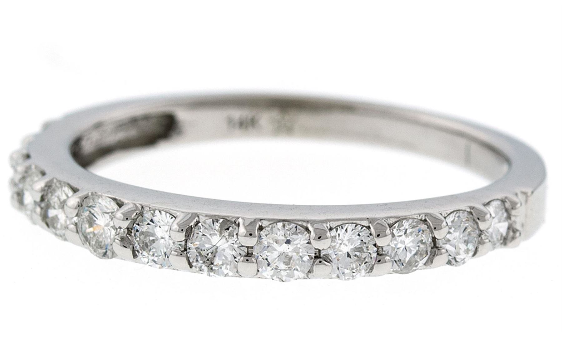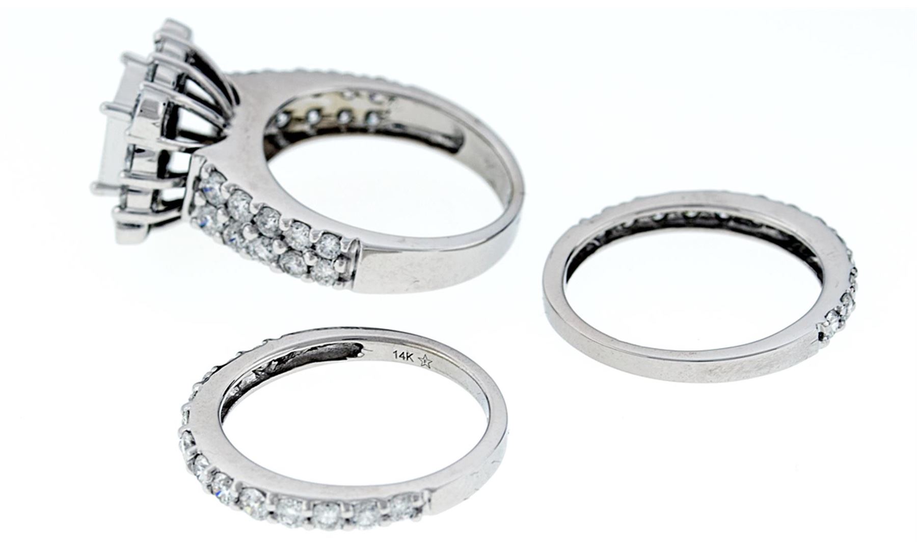 One Polished, stamped and tested 14K white gold three ring set with a bright finish. The rings are mounted with: 4 genuine square diamonds weighing approximately 0.68 carats, and 58 genuine round diamonds weighing approximately 3.22 carats. The set weighs 11.8 grams, condition is excellent, Identity: Natural Diamond, Shape: Square Round, Cutting Style: Brilliant Cut, Diamond Count: 62 Diamonds, Measurements 3.0 X 3.0mm (4 Square Diamonds) 2.0 - 3.0 MM (58 Round Diamonds), Total Weight: 3.90 carats, Color: G - H, Clarity: SI-SI2, Color Grade: G - H, Cut: Very Good, Refractive Index 2.417, Hardness: 10. This set comes with all three rings and includes an appraisal. AIGL Appraised at $11,728.00.