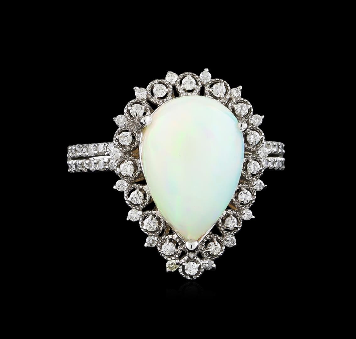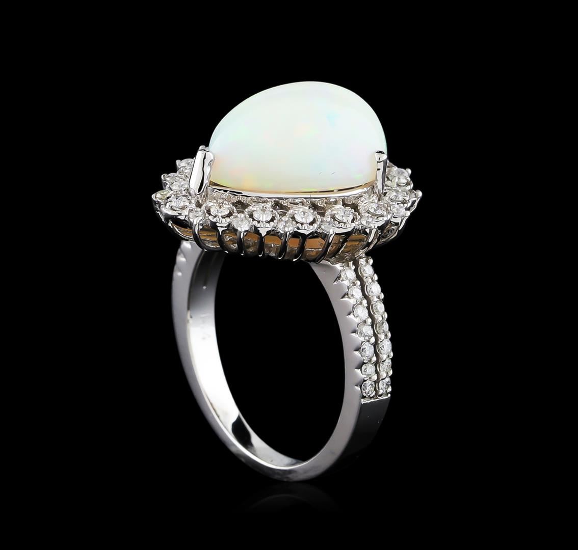 One ring featuring: 14KT white gold weighing 5.25 grams containing one opal with a total weight of 3.90ct and side diamonds with a total weight of 0.45ct.
