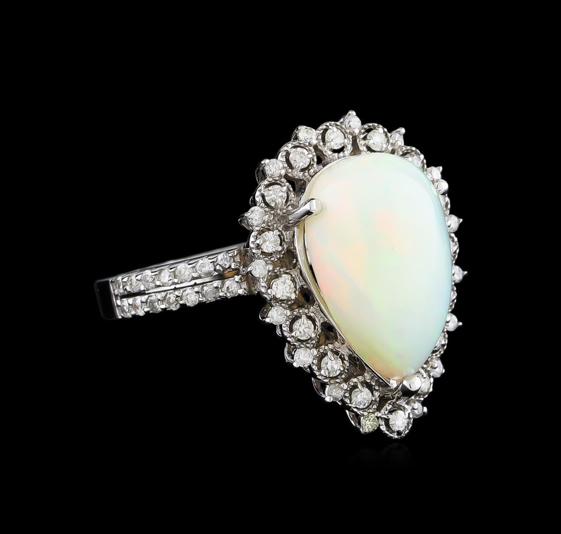 One ring featuring: 14KT white gold weighing 5.25 grams containing one opal with a total weight of 3.90ct and side diamonds with a total weight of 0.45ct.