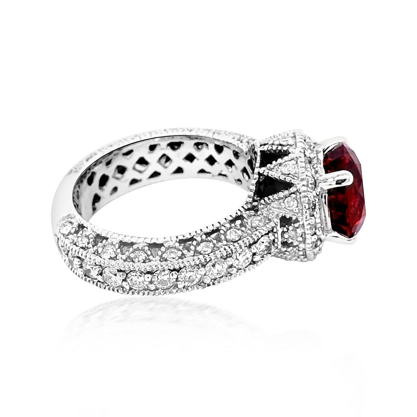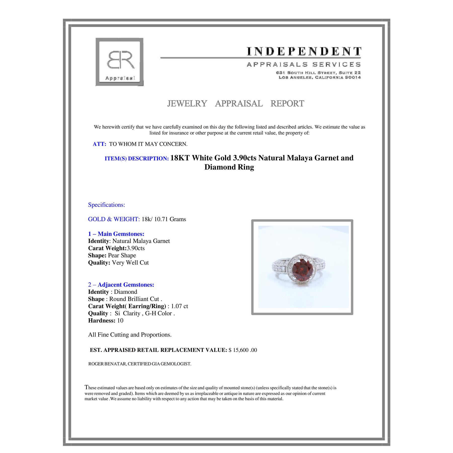 18K W/G NATURAL MALAYA GARNET RING :10.71GRAM /DIA: 1.07CT/MALAYA GARNET :3.90CT/#GVR1353/ MALAYA GARNET IS THE VERY RARE GARNET IN THE GARNET FAMILY. VERY HARD TO FIND THIS KIND OF COLOR AND QULAITY