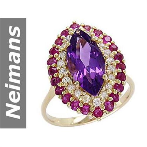 3.91 ct Amethyst , Ruby & White Sapphire Ring 14kt Gold