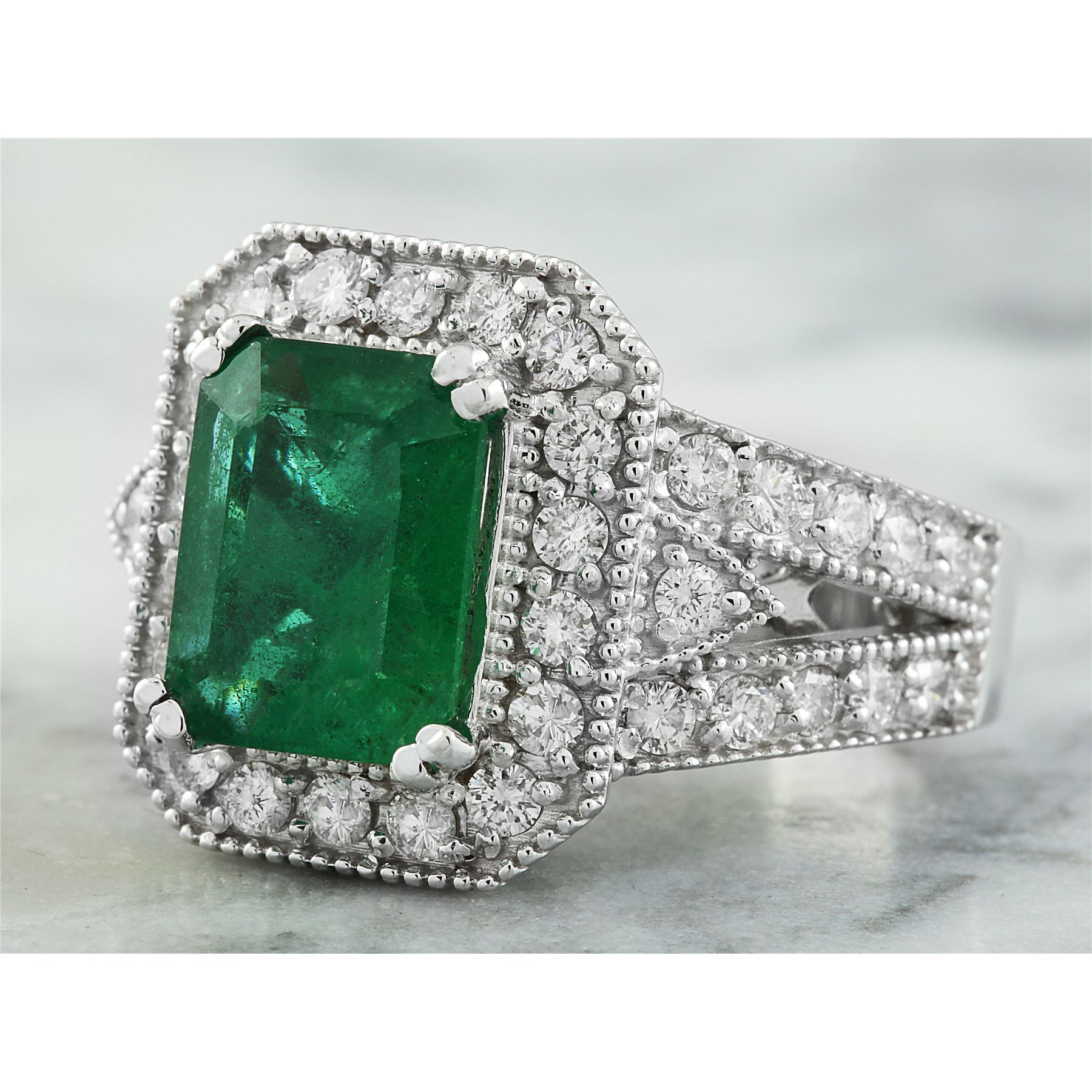 3.92 CTW Emerald 14K White Gold Diamond Ring