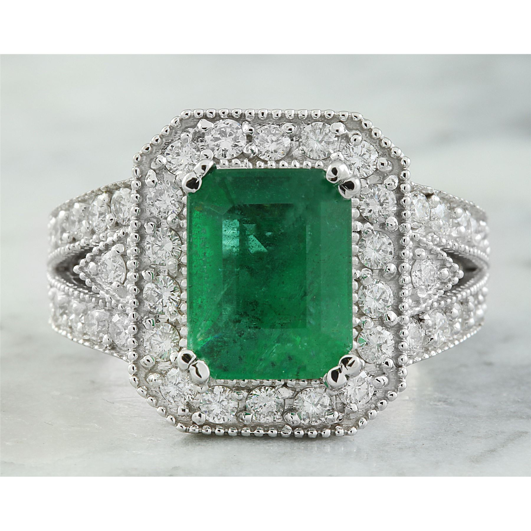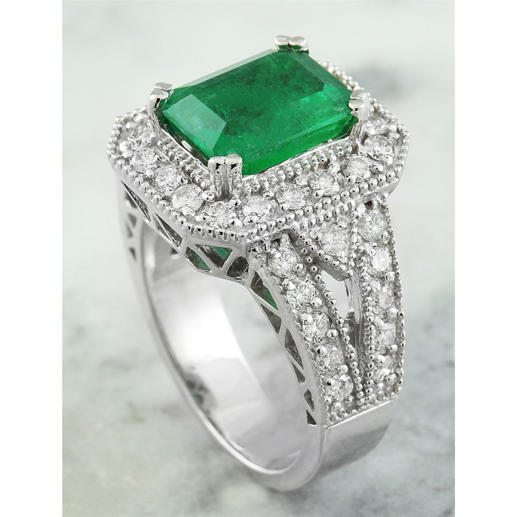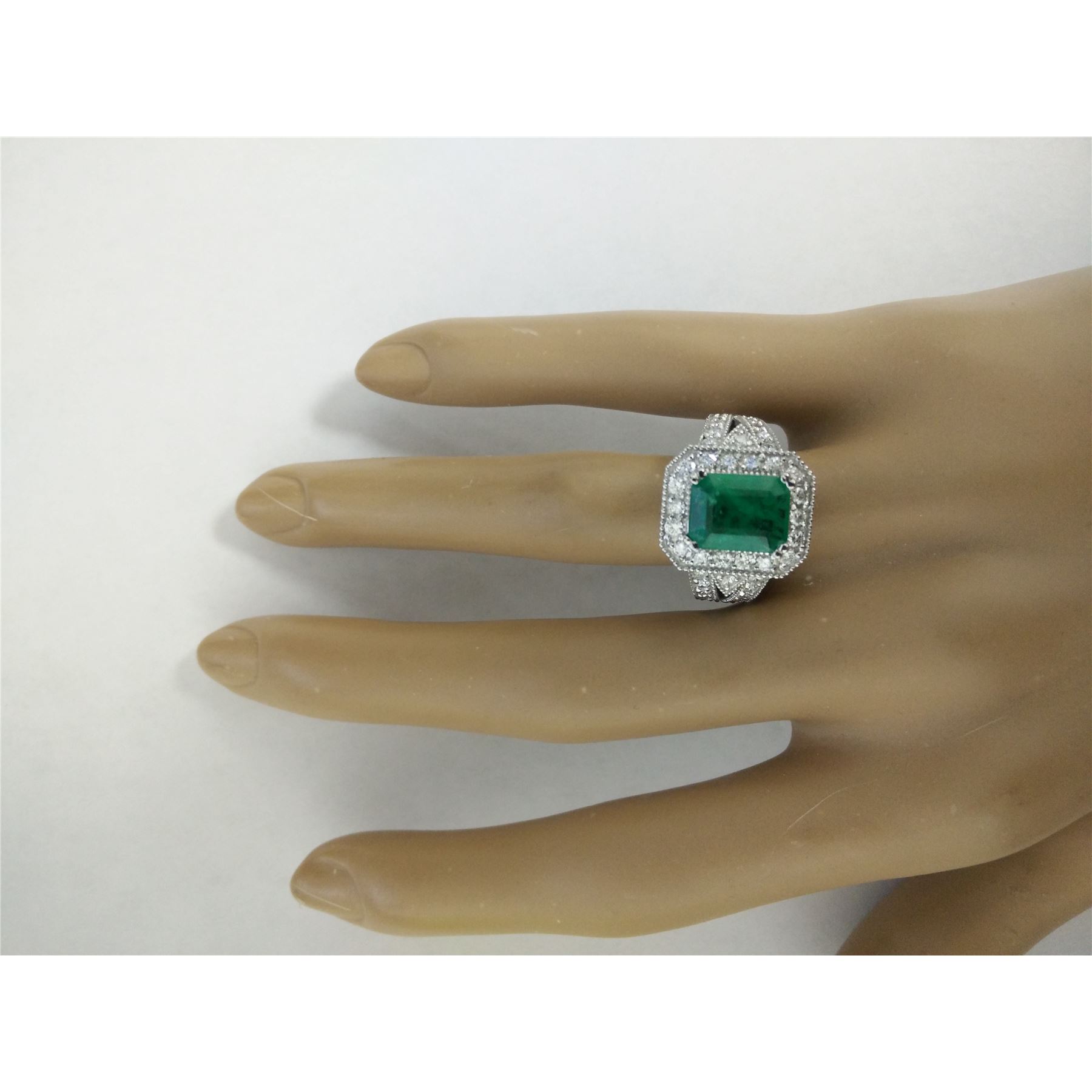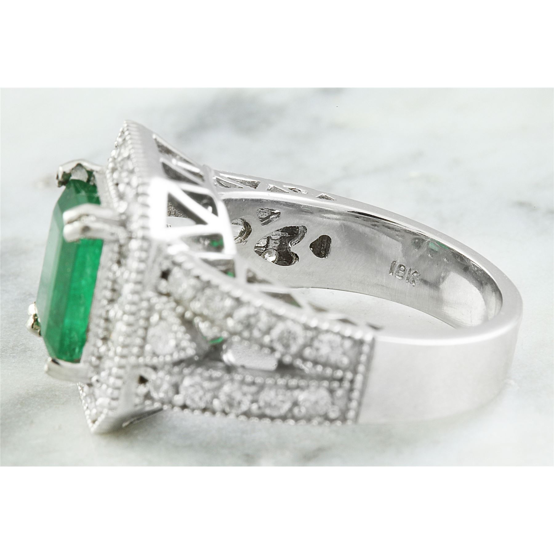 3.92 CTW Emerald 18K White Gold Diamond Ring