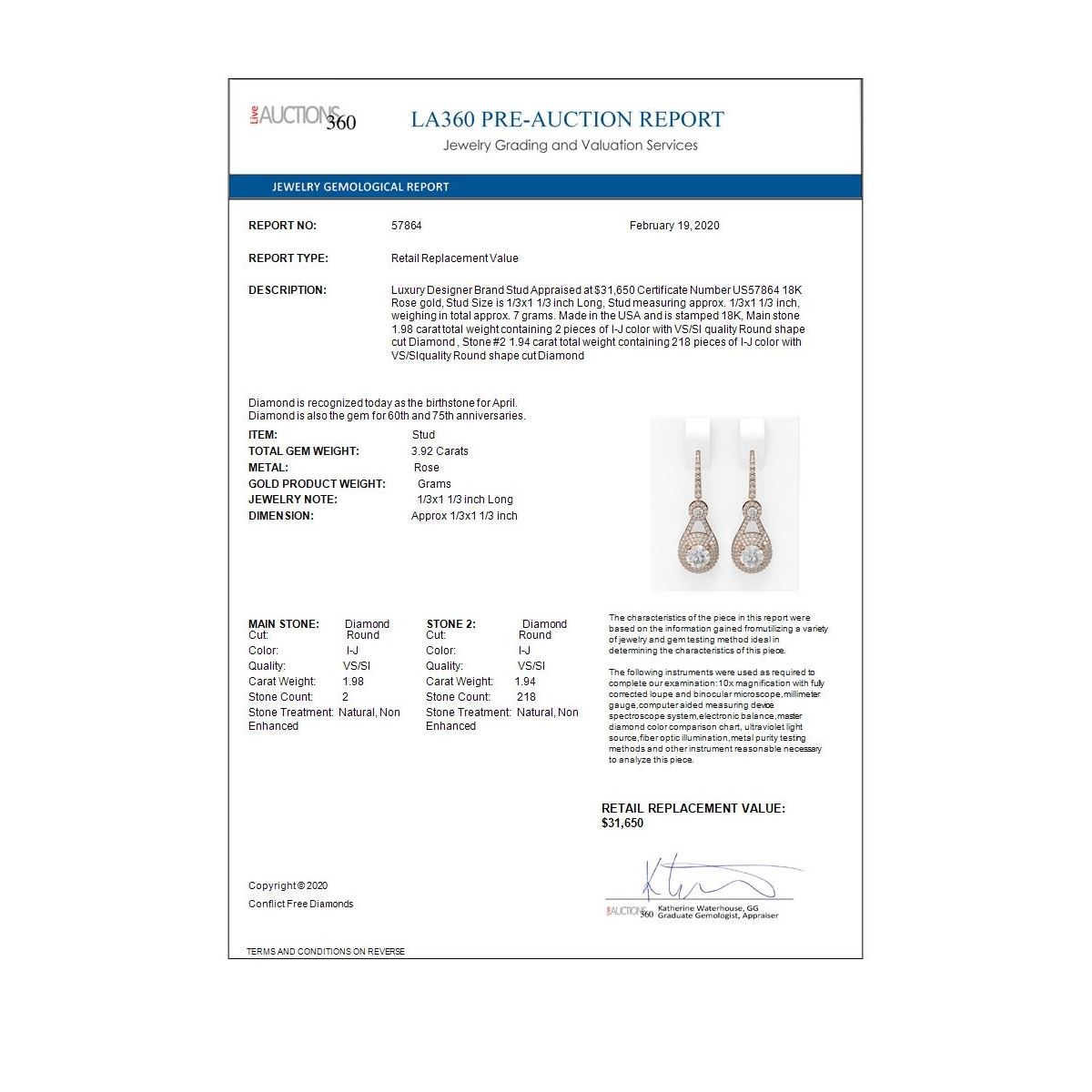 Total Gem weight: 3.92 carats