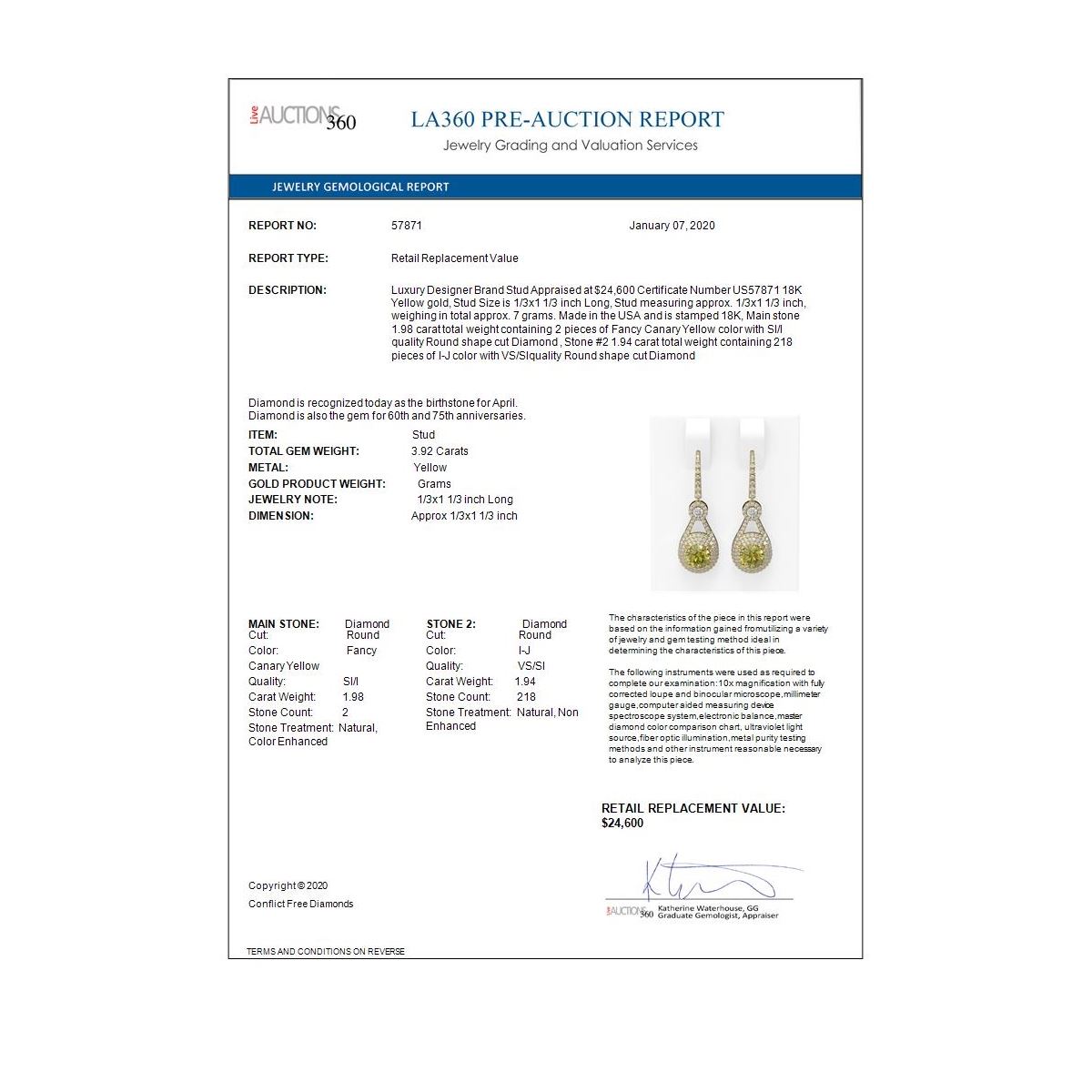 REF-558X9A - SKU: 57871 ---- 3.92 ctw Fancy Yellow Diamond Earrings 18K Yellow Gold