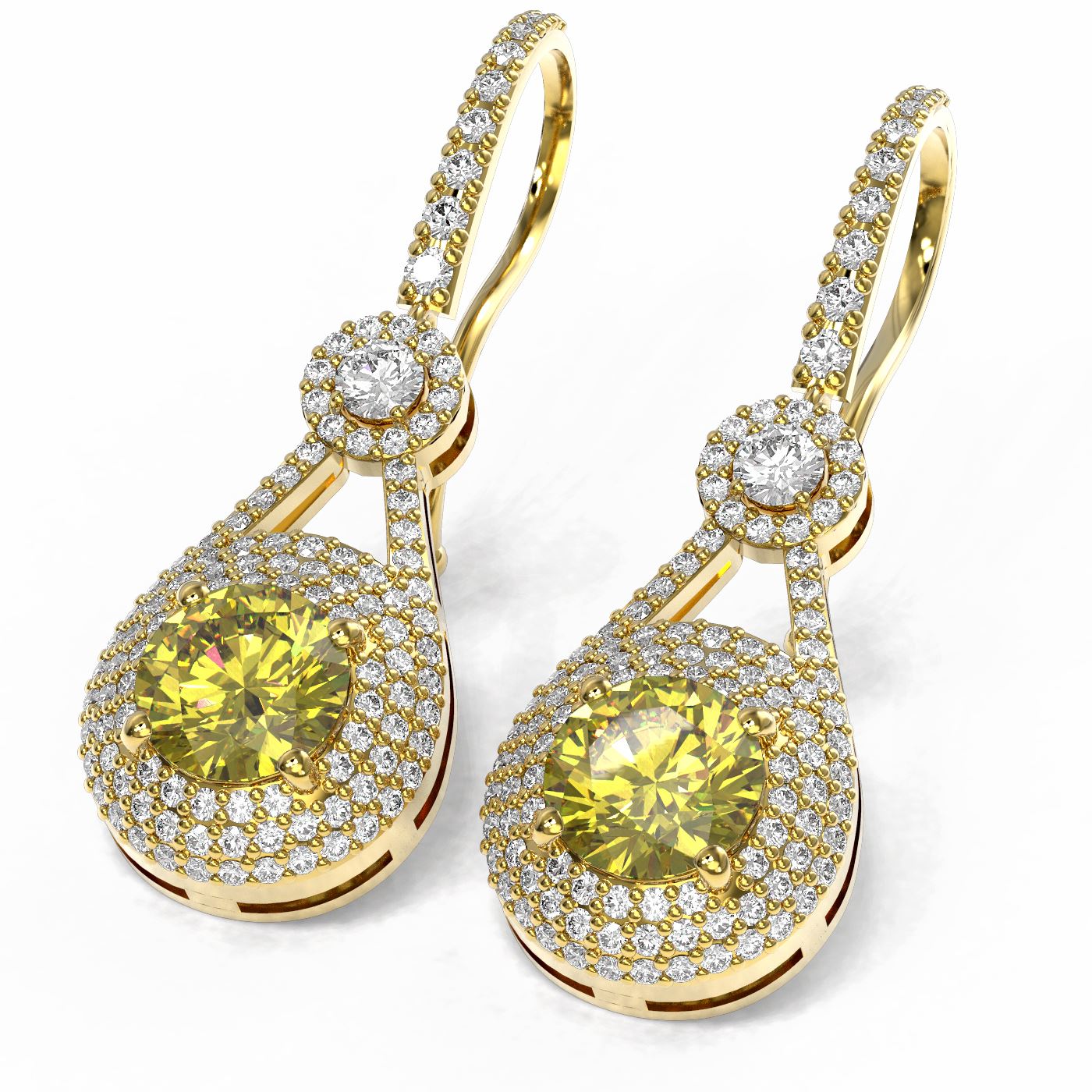 REF-558X9A - SKU: 57871 ---- 3.92 ctw Fancy Yellow Diamond Earrings 18K Yellow Gold